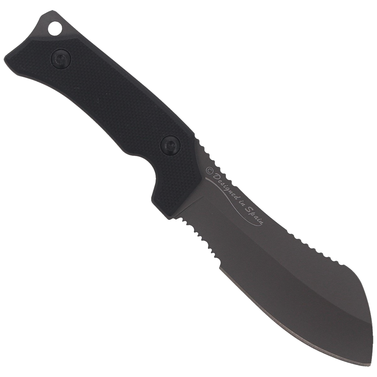 Blade - made of corrosion-resistant 7Cr17MoV steel Nessmuk profile, offers a long cutting edge thanks to its high belly. This geometry works well for precise field tasks, as well as for working in confined spaces. The serrated portion of the Blade helps cut fibrous materials and hard plastics. The use of a titanium-based coating not only improves durability, but also reduces the blade's visibility in confined conditions, enhancing its tactical qualities. Blade design allows for smooth and quick action in emergency and field situations.