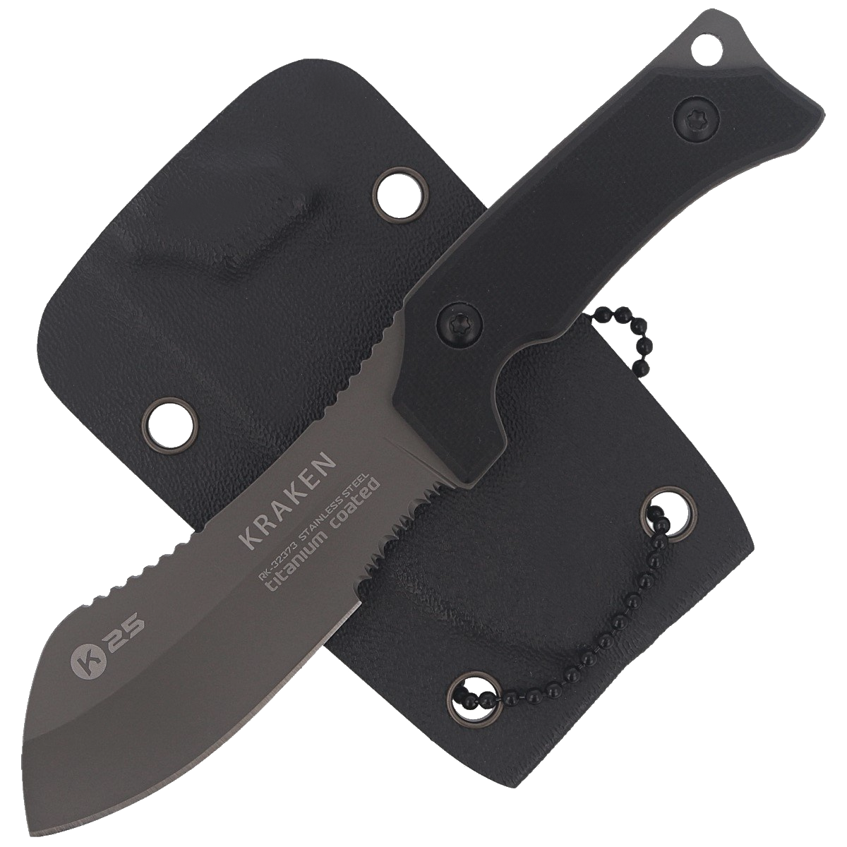 K25 Kraken Neck Knife Black G10, Titanium 7Cr17Mov