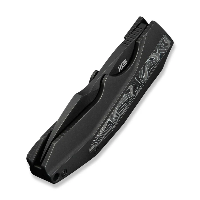Handle - made of milled titanium 6Al-4V, providing high rigidity, mechanical resistance and lightness. The main panels are enriched with inlays of a unique composite Aluminum Foil Carbon Fiber, offering a three-dimensional optical effect and increased surface grip in all conditions. Gentle edge profiling and ergonomic finger undercuts promote comfort and control, even during prolonged use in off-road or EDC environments. The design is reinforced by a precision-fitted backspacer and a deep-carry tip-up clip , allowing the knife to be carried discreetly and steadily in a pocket. The entire design is maintained in a sleek, minimalist aesthetic, combining modern engineering with the superior workmanship typical of Cecchini's designs in the premium WeKnife line.