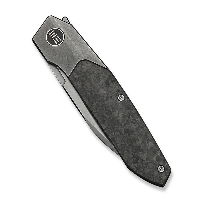 WeKnife Brr15 Shredded Carbon Fiber, Polished Gray is an exclusive interpretation of Rafal Brzeski's design, created by WeKnife as a combination of sophisticated design and advanced EDC functionality. The design is based on balanced form, perfect proportions and precise manufacturing craftsmanship, offering high performance culture and high-end aesthetics. Blade is made of Böhler M390 powder steel , considered one of the best materials in utility knives thanks to its exceptional abrasion resistance, excellent sharpness retention and very high corrosion resistance. The Wharncliffe profile provides full control of the line of cut throughout the entire range of the blade, allowing precise maneuvering in EDC tasks. The stonewashed finish enhances the practicality of the design, effectively masking traces of use and highlighting the visual depth of the material. Handle made of milled titanium 6Al-4V and inlays of Shredded Carbon Fiber, creating a highly resistant yet decorative structure with a unique pattern. The profiled edges provide a stable grip, while the ergonomic shape of the handle guarantees full control and comfort during daily work. The bolster lock has been integrated into the titanium frame, offering stability and the discreet elegance of security. The front flipper type opening mechanism , supported by ceramic bearings, allows the blade to be unfolded smoothly and instantly with one hand. The functionality of the design is complemented by a titanium deep-carry clip and a solid backspacer, increasing the rigidity of the entire body. The WE24007-3 is the perfect choice for collectors, enthusiasts of modern design and discerning EDC users who appreciate uncompromising build quality.