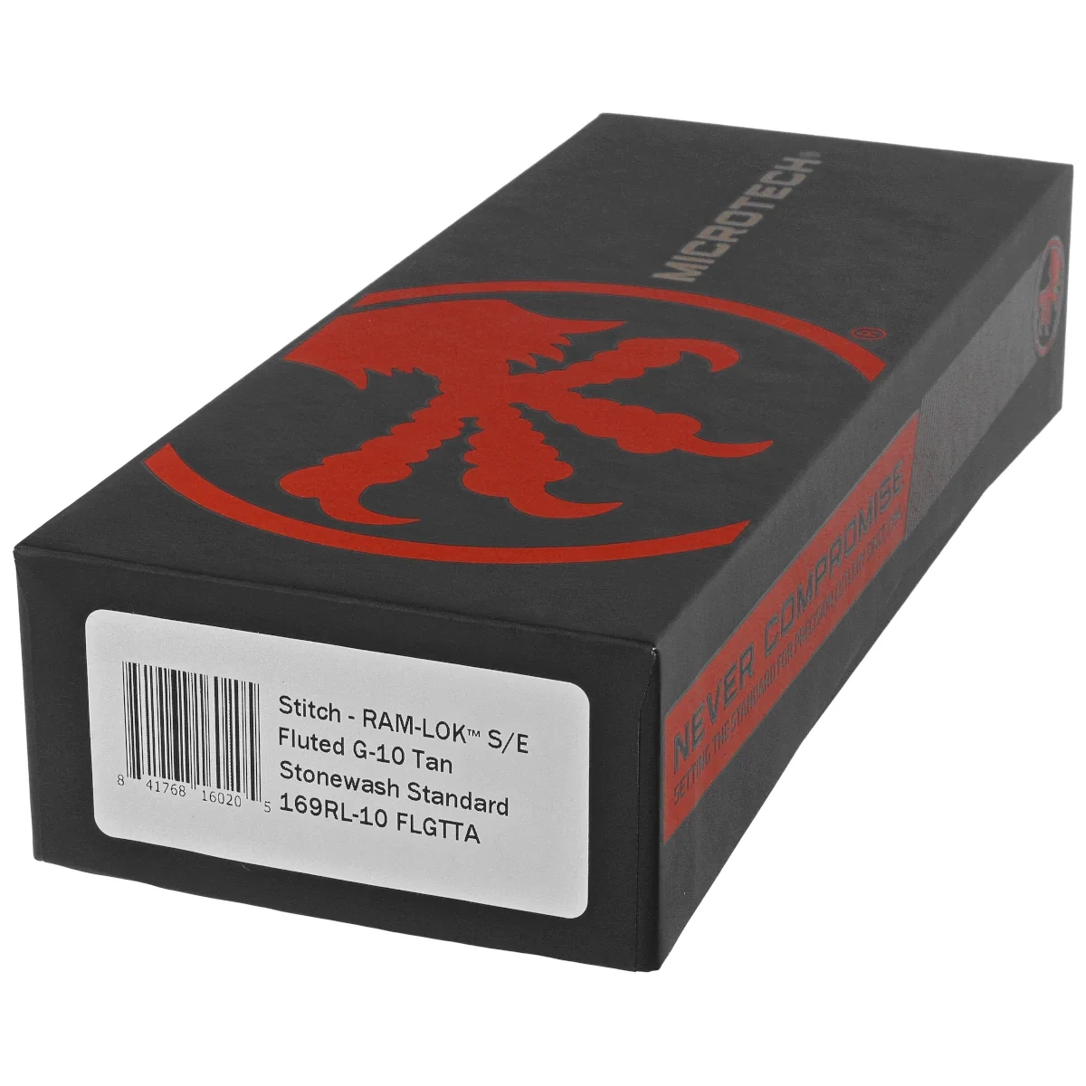 - Stitch Ram-Lok S/E Tan Fluted G10, Stonewashed manual version of the popular design by Sebastijan Berenjie of Borka Blades and Microtech. Wide harpoon-shaped blade, superior materials and legendary quality workmanship from Microtech Knives