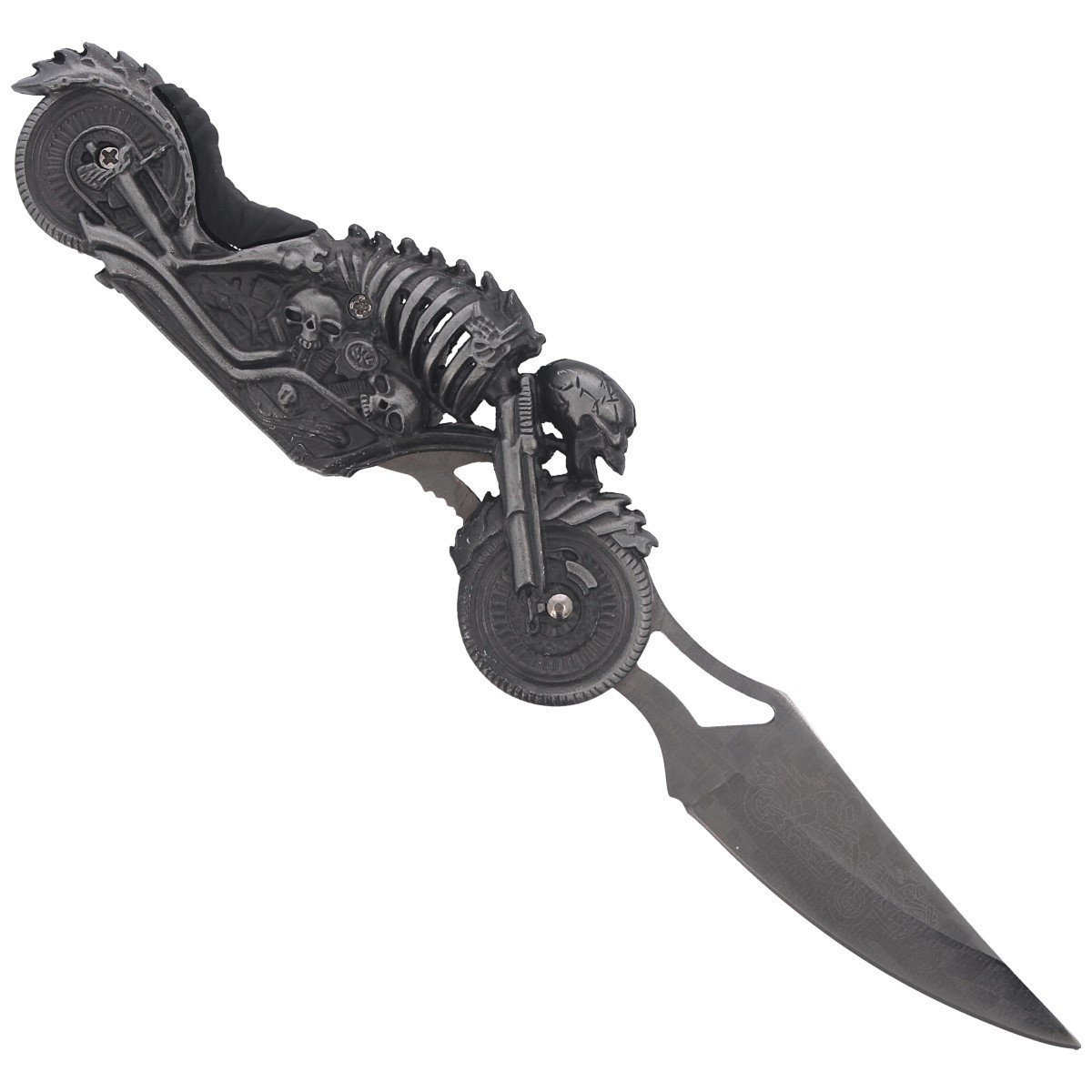 Martinez Albainox Moto Skeleton Knife with Flashlight Gray Zamak, Laser Ornament 3Cr13Mov (18063)