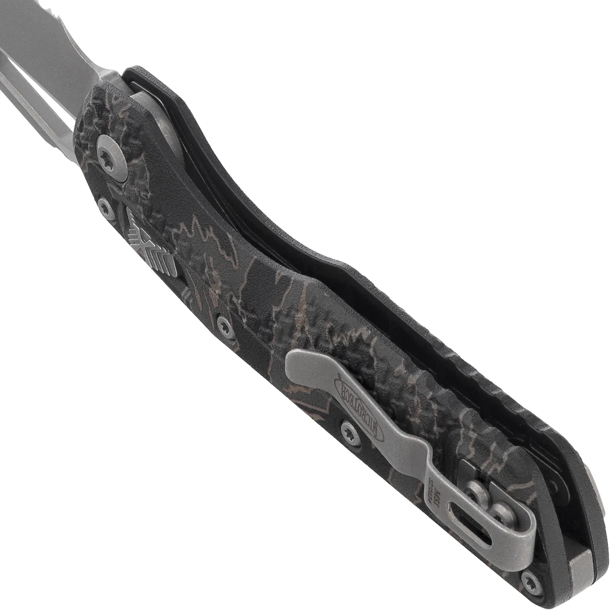 Handle - made of durable polymer, covered with Tri-Grip texture for better grip. Wide locking slide with Microtech's characteristic stepped X structure . Both grips are bolted together with a solid aluminum backspacer. The double-sided (right / left) clip allows you to discreetly carry the knife in tip-up position. Above the clip a lanyard hole, a place for a safety or decorative cord.