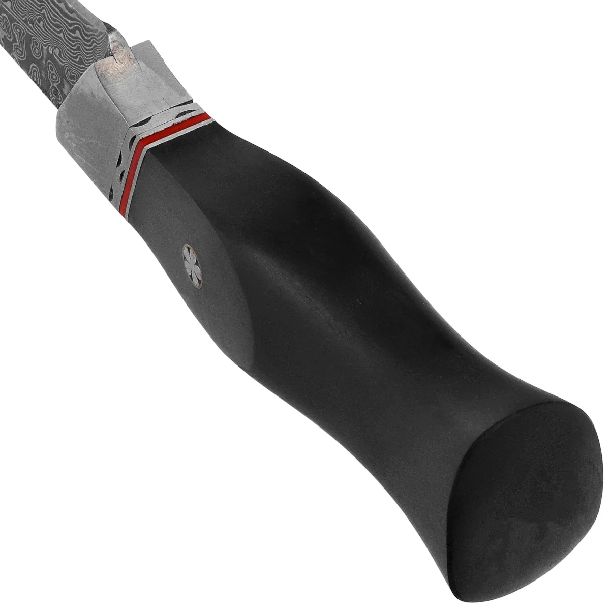 Model 32674 from Martinez Albainox exemplifies the highest level of functional craftsmanship, combining the craftsmanship of traditional knife-making with the luxurious character of a collector's tool. The design was inspired by a classic hunting knife, but the materials used and the way it is finished clearly place this model in the premium segment. The use of Black Ebony wood with a deep, natural luster, combined with Damascus steel with a distinct line pattern, creates a design that draws the eye and emphasizes the unique character of each piece. The Blade is made of 73-layer Damascus steel - a material prized both for its performance qualities and for its unique mosaic pattern that never repeats itself. The layout of the layers and the careful finishing make this blade a full-fledged aesthetic piece. The wooden Handle, supported by a steel bolster and colored spacer, provides both comfort and visual contrast to the Blade. This model comes with a decorative sheath made of natural leather - hand-stamped and stitched, with a floral ornament - which completes the whole as an item dedicated to collectors, hunters and enthusiasts of the classic form.