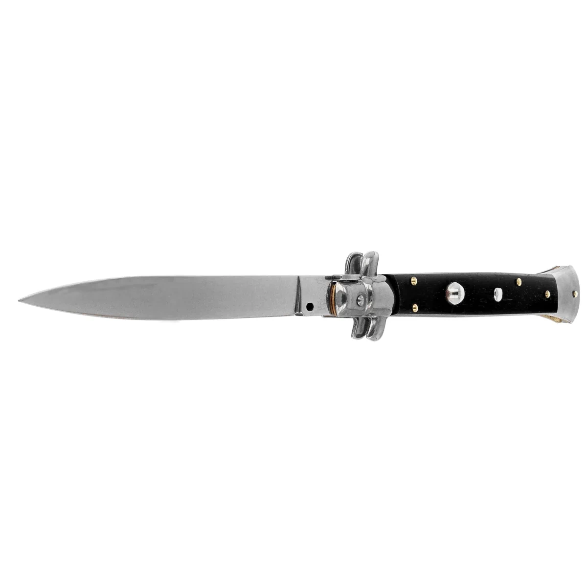 - Frank Beltrame Stiletto Ebony 28 cm - a classic spring knife handmade in Italy. Handle made of ebony wood, 420 stainless steel, traditional push-button mechanism. A combination of style, precision and craftsmanship.