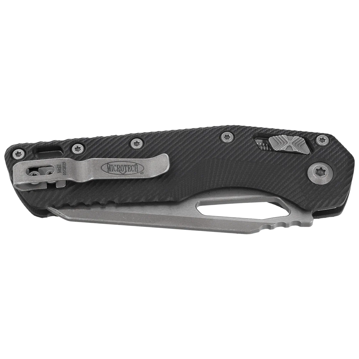 MSI S/E Black Fluted G10, Apocalyptic folding knife that combines strength, durability and elegance. Its blade is made of excellent M390MK steel , which is the result of a collaboration between two renowned companies - Microtech and Böhler. This steel is known for its exceptional strength and long sharpness retention, making this knife unafraid of any challenge. The intuitive RAM-Lok ensures safety during use. This innovative lock is easy to operate and provides ease of use for both right and left-handed people. Handle of the knife is made of G10 composite , durable and ergonomic. Its shape is designed to fit perfectly in the hand, ensuring comfort even during prolonged use. This knife is not only a tool, but also a work of applied art. Its designer, Anthony Marfione, founder and owner of Microtech, has taken care of every detail. From the elegant black finish to the satin details, this knife is both beautiful and practical. Whether you're looking for a reliable tool or an elegant accessory, MSI (Microtech Standard Issue) knife will meet your needs.