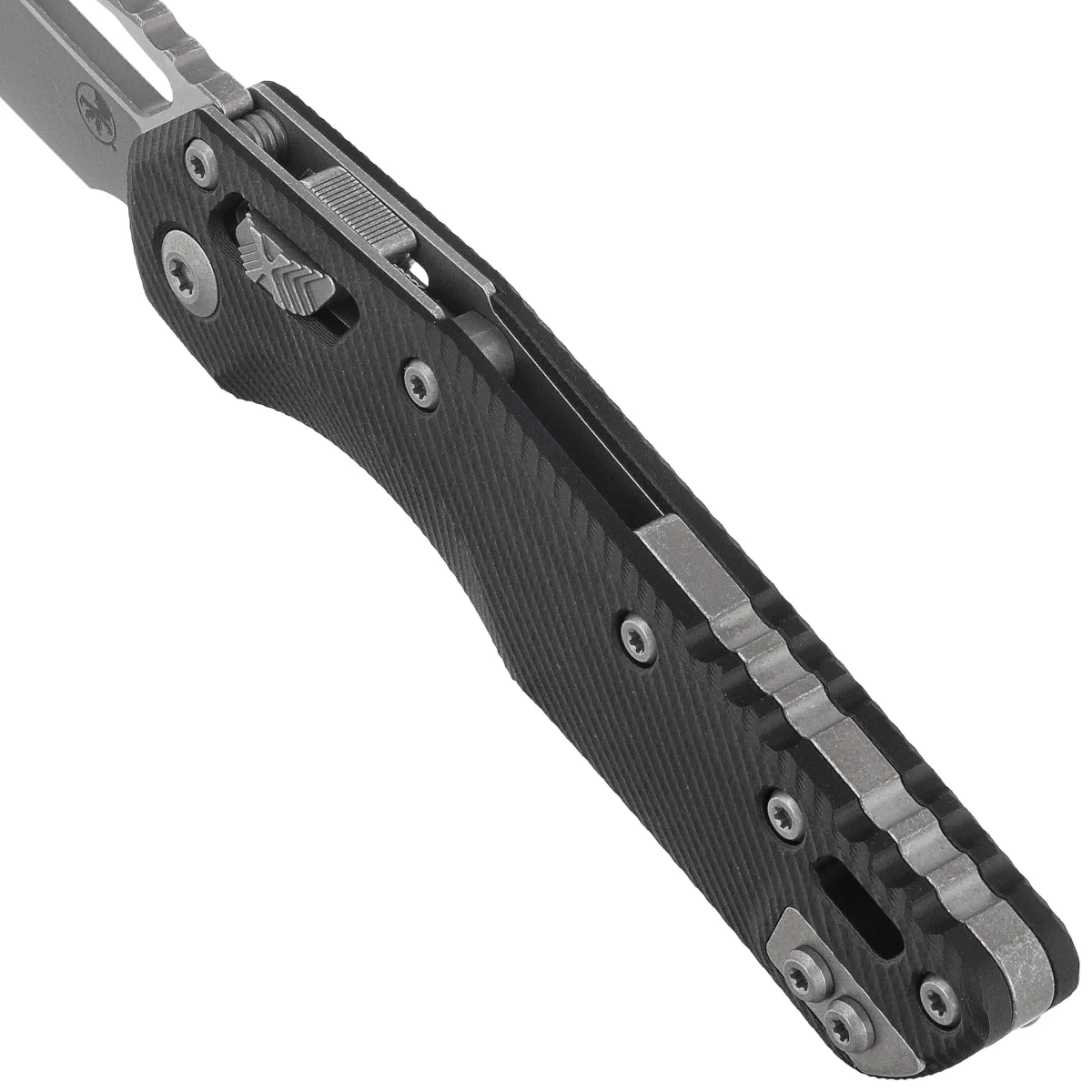 Handle – crafted with the highest precision on CNC machines from G10 composite. For improved grip, the handle surface features a deeply milled, three-dimensional 3D Fluted, providing a secure and stable hold. The wide lock slider with Microtech’s signature stepped texture (X Button) ensures confident and comfortable operation. The handle scales are connected with a solid aluminum backspacer. The dual-position (right/left) clip allows for discreet tip-up carry. Above the clip is a lanyard hole, suitable for attaching a safety or decorative lanyard.