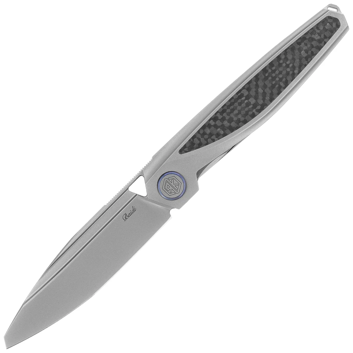 - Baidi T Titanium/Carbon Fiber, Bead Blasted, a premium folding knife that combines an M390 steel blade with a titanium frame and titanium and Carbon Fiber composite grips. Perfect precision, refined style and EDC functionality.