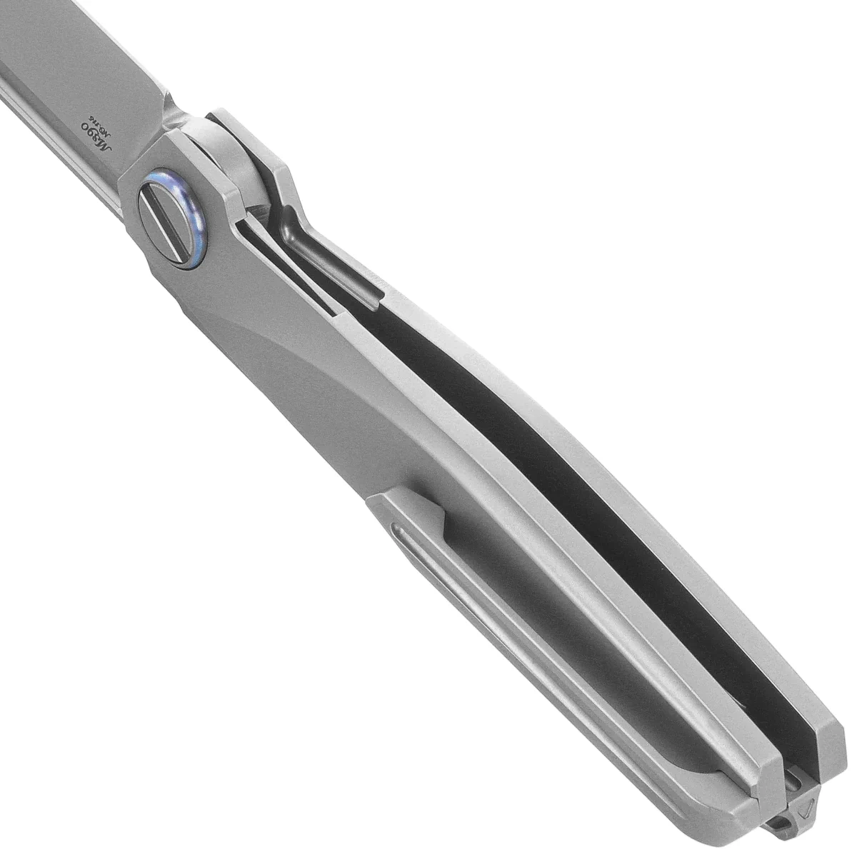 Rike Knife Baidi T Titanium/Red Carbon Fiber, Bead Blasted M390 (RK-Baidi-T-P/RCF)