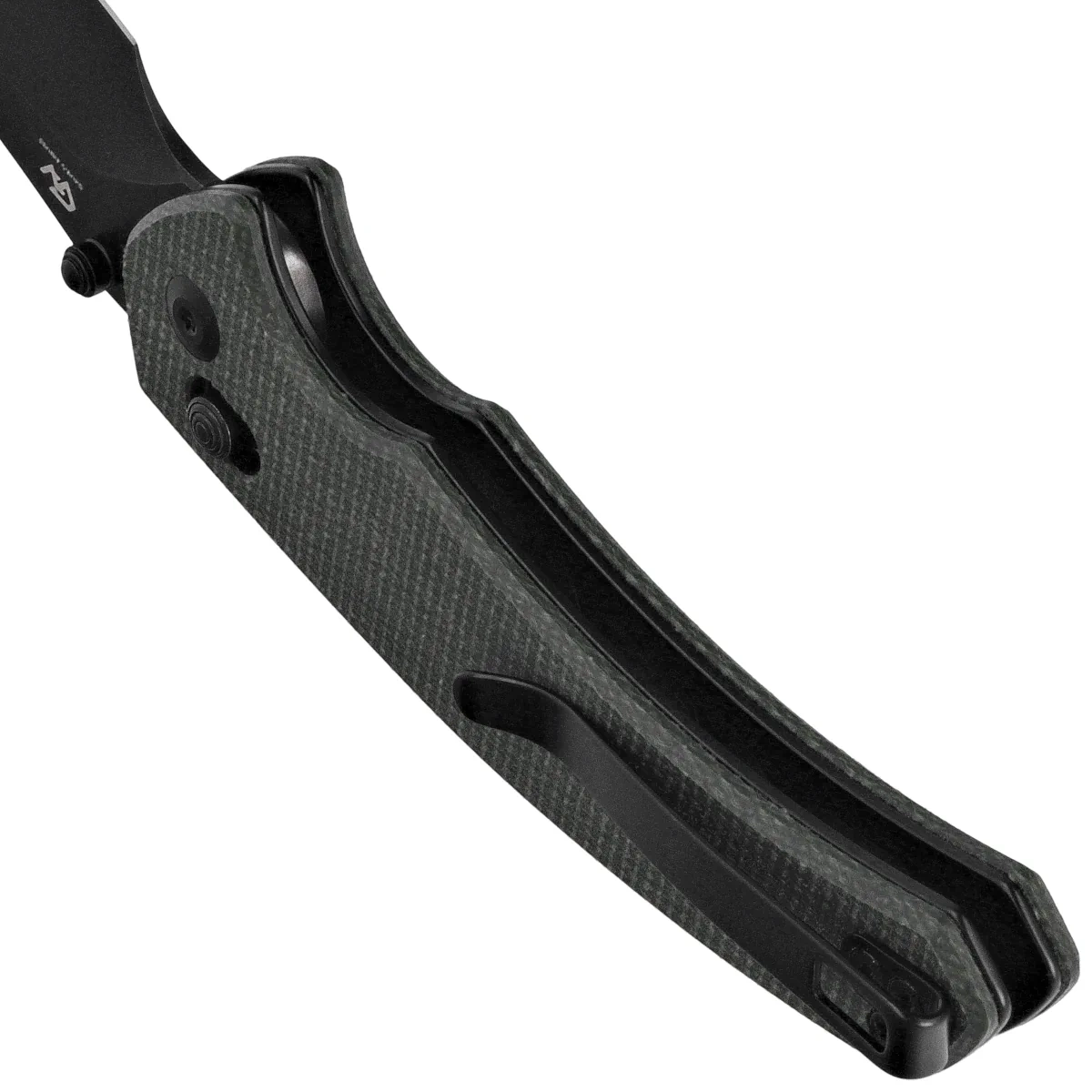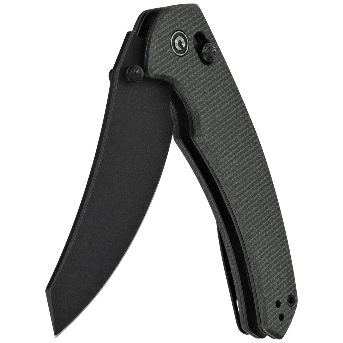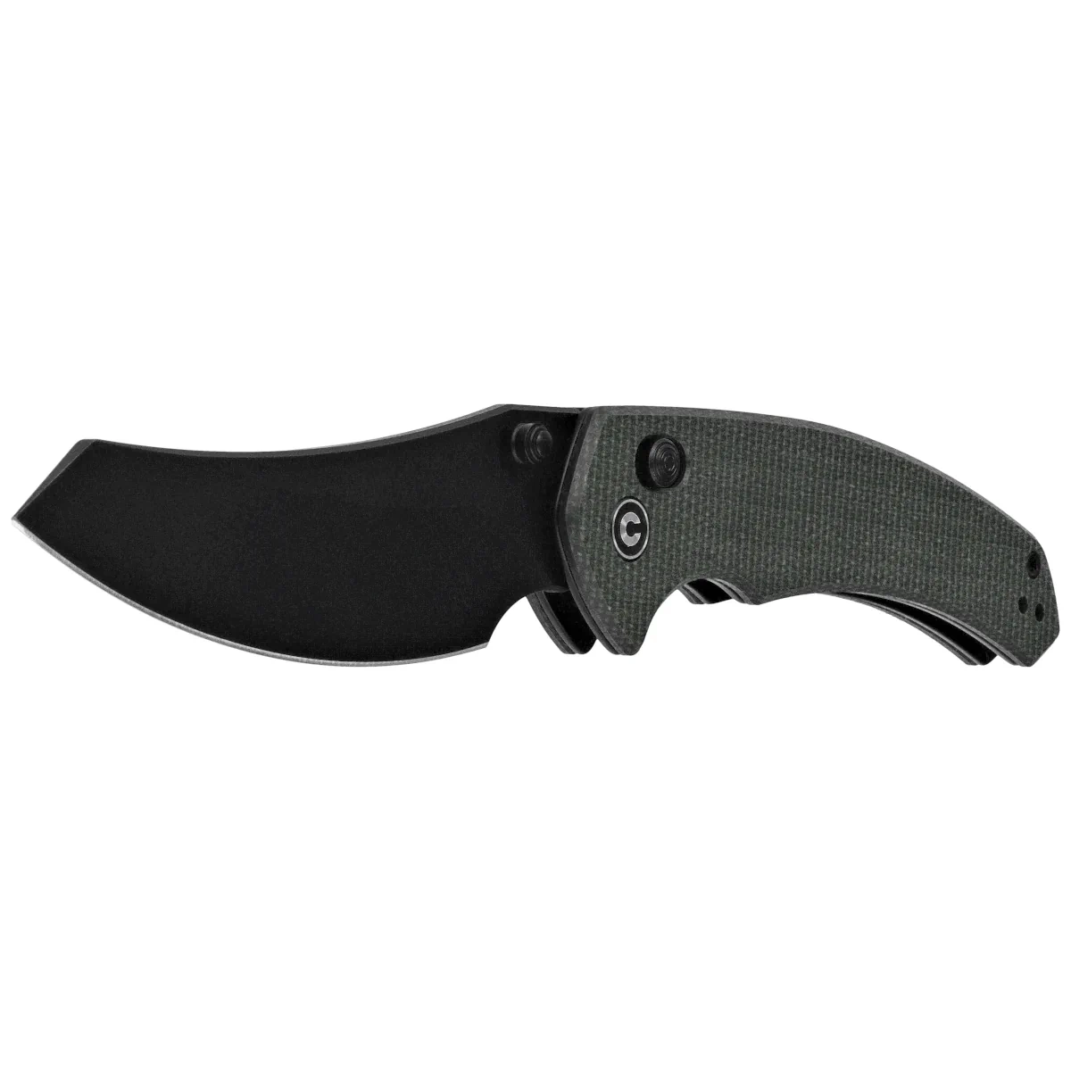 Handle - made of Canvas Micarta composite, a virtually indestructible plastic, insensitive to weather, resistant to chemicals and mechanical damage. The chamfered edges of the covers eliminate sharp edges and the rough textured and textured surface enhances comfort and sure grip. The open-backed design, fixed with steel spacer sleeves, reduces weight and facilitates cleaning. The pivot axis is decorated with a stylized Civivi brand logo . A two-position, right/left deep carry clip allows you to carry the knife discreetly in your pocket in tip-up position (blade tip up).