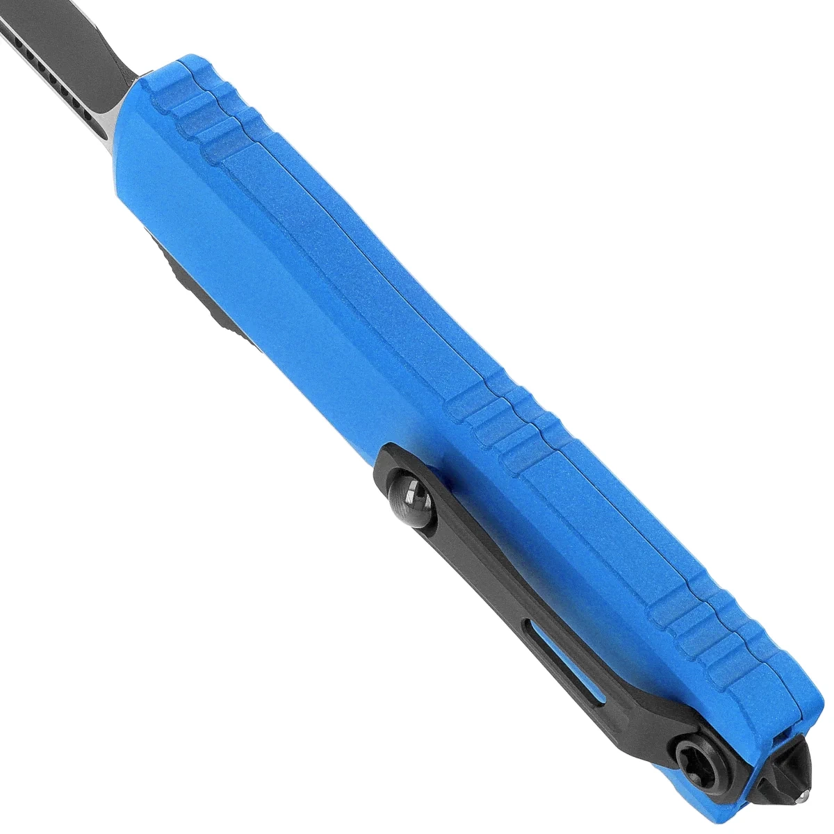 Ultratech S/E Gen III ZBP Blue Aluminum, Black is the new addition to the Ultratech series - Microtech's first OTF knife without any blade play when unfolded! The blade play free automatic is distinguished by a number of improvements such as; Crud Kutter™, Dual-Fuel Drive Train™, Zero Blade Play™. The Handle was also redesigned, equipping it with solutions known from other models. Working in D/A (Double Action) mode, it allows the blade to be instantly extended and retracted with a single thumb movement. The design by Tony Marfione, owner of Microtech Knives, combines modern design with the highest quality workmanship