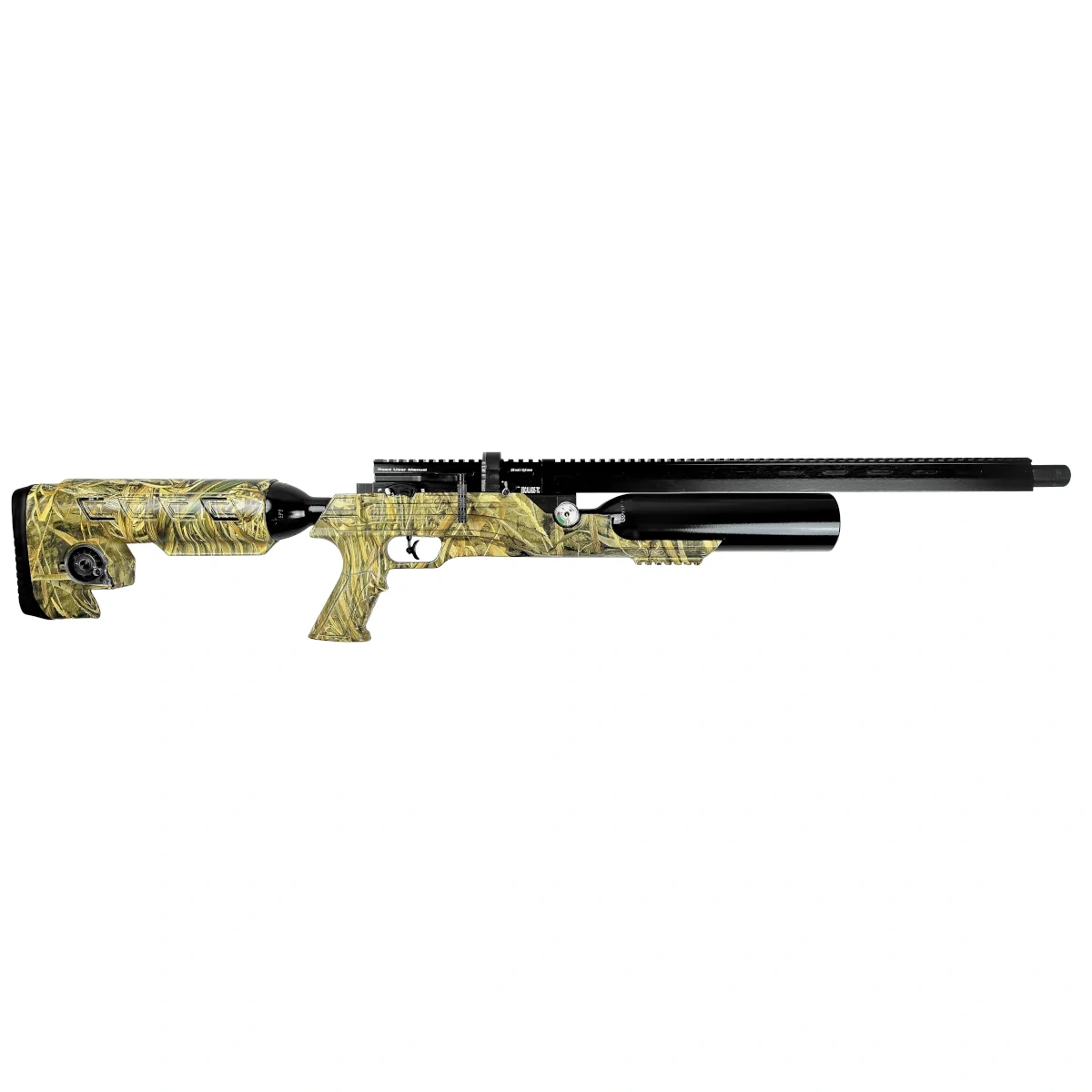 Escalade-TC is equipped with a dual-cylinder air system—425cc tanks located under the barrel and in the stock—for a combined 850cc of compressed air at a working pressure of 250 bar. With the help of Anti-Hammer Bounce technology, shooters can enjoy extended sessions of up to 270 shots per fill (FAC version).