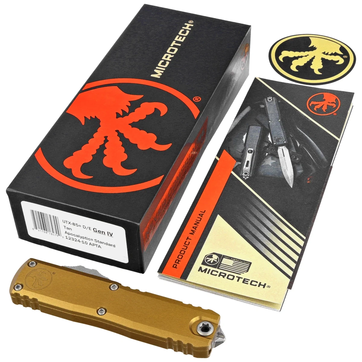 - UTX-85 Gen IV D/E Tan Aluminum, Apocalyptic is a compact OTF automatic knife from the UTX-85 series. Designed for EDC applications, it retains all the advantages of larger models. Operating in D/A mode, it features a fast blade extension mechanism.