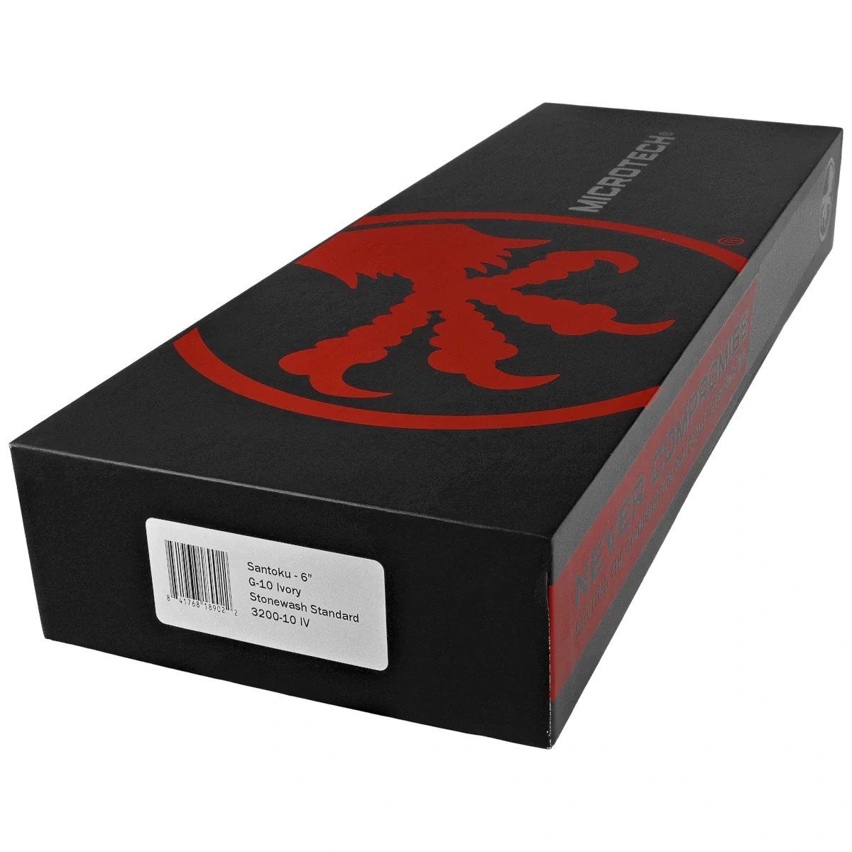 - Santoku 6" Ivory G10, Stonewashed - a premium kitchen knife that combines a precision Santoku Blade made of M390MK steel with an ergonomic G10 composite handle. A unique combination of durability, precision and modern aesthetics for the discerning user.