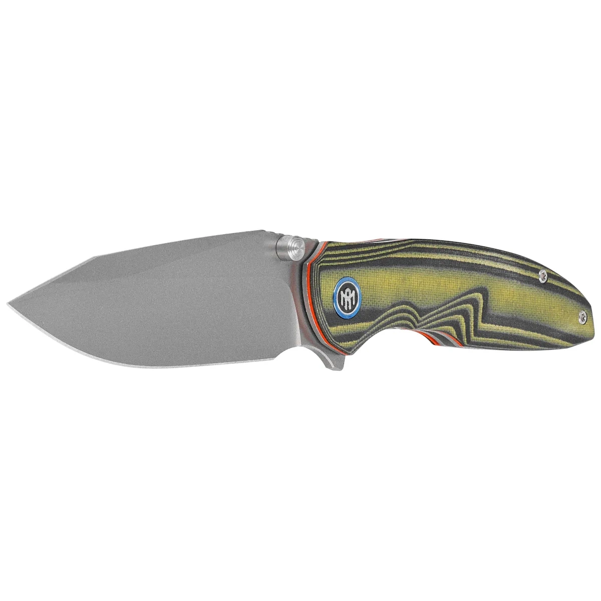 Handle - steel construction with G10 composite grips guarantees durability, rigidity and resistance to external conditions. The applied milling improves the ergonomics of the grip, while giving the surface a distinct technological texture. The liner lock works securely and safely, providing the user with stability while working. The deep-carry clip allows for low-profile carrying of the knife, making it as practical as it is elegant. The design combines the functionality of an everyday tool with the aesthetics of collectible objects, without sacrificing any aspect of utility.