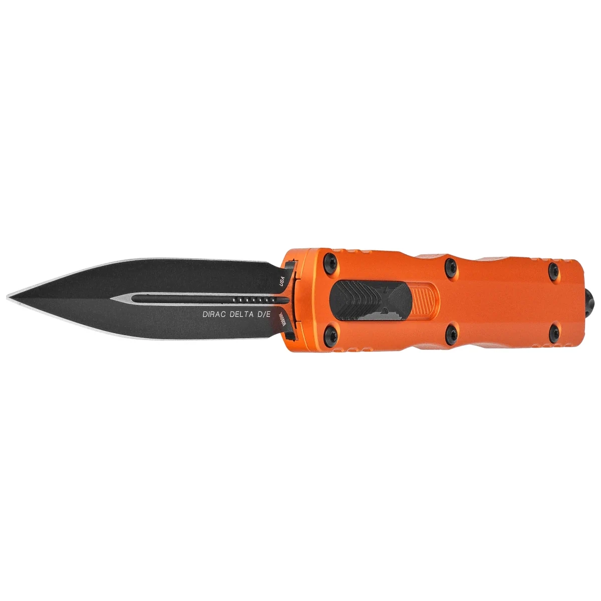 - Dirac Delta D/E Orange Aluminium, Black Larger version of the OTF automatic knife from the Dirac series. D/A mode, equipped with a fast blade ejection mechanism. Slider button on the side of the handle. Designed by Tony Marfione.