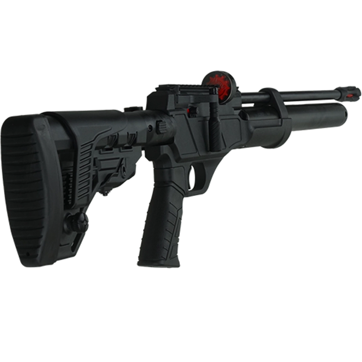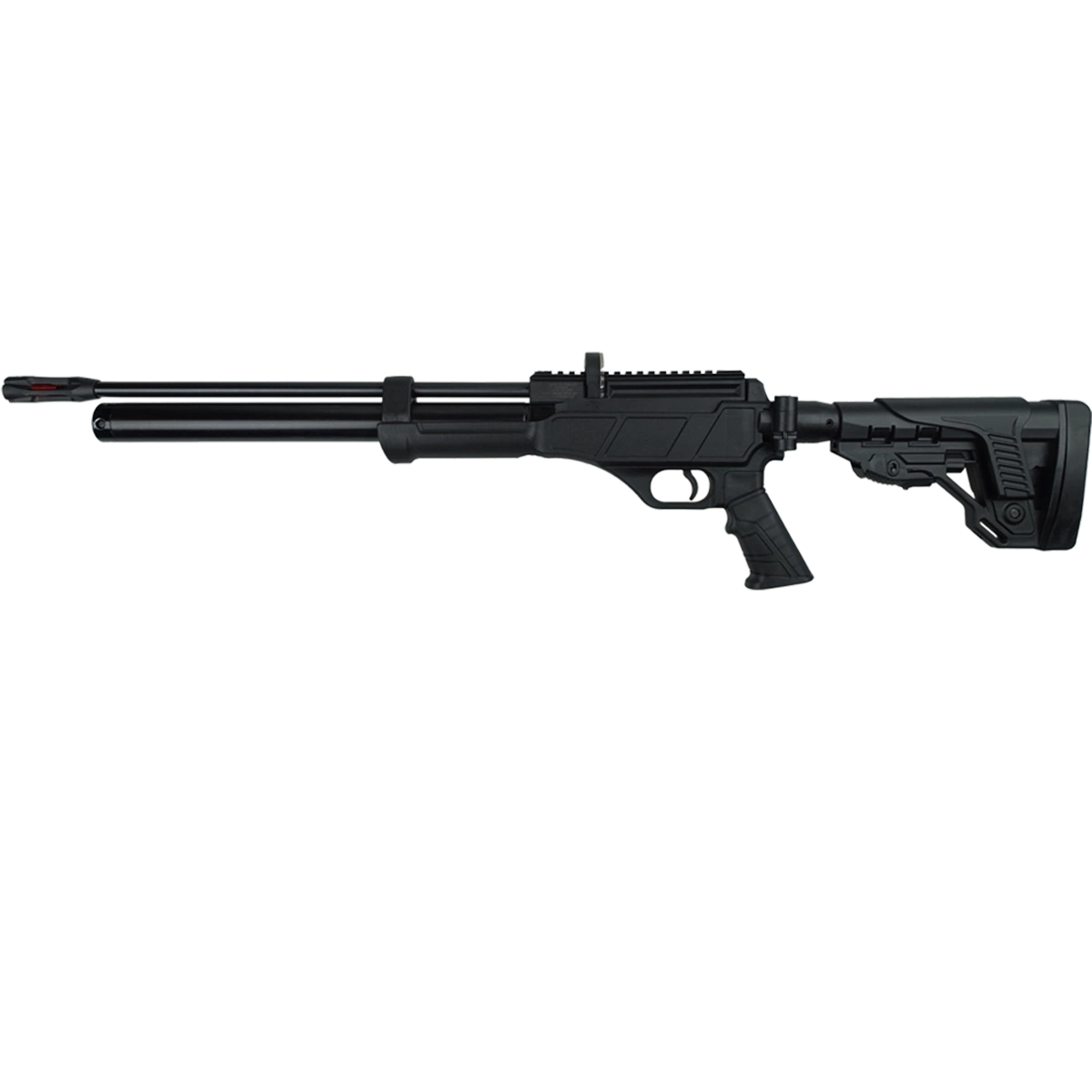 - Hatsan Zylox – the new generation of tactical PCP air rifles. Ergonomic pistol grip, a foldable AR-15-style telescopic stock, and a biathlon-style side lever. 215cc air cylinder. Comes with two magazines and air stripper. Available in 4.5, 5.5, and 6.35mm