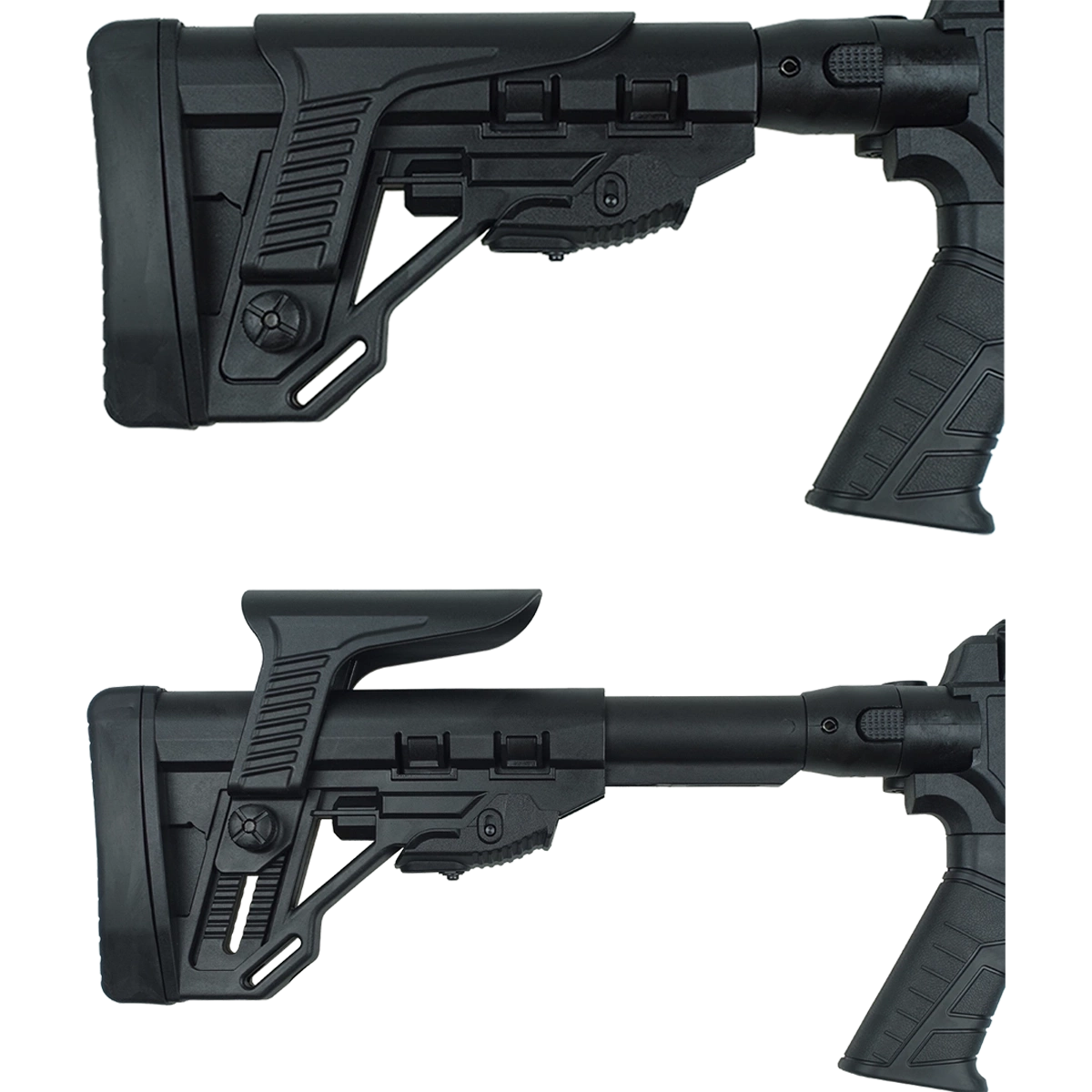 Stock – tactical-style with a rubberized pistol grip and a fully adjustable AR-15-type buttstock. The telescopic stock features a vertically adjustable cheek rest and a rubberized butt pad. The side-folding design makes transport and storage more convenient. The rifle’s body is constructed from durable polymer.