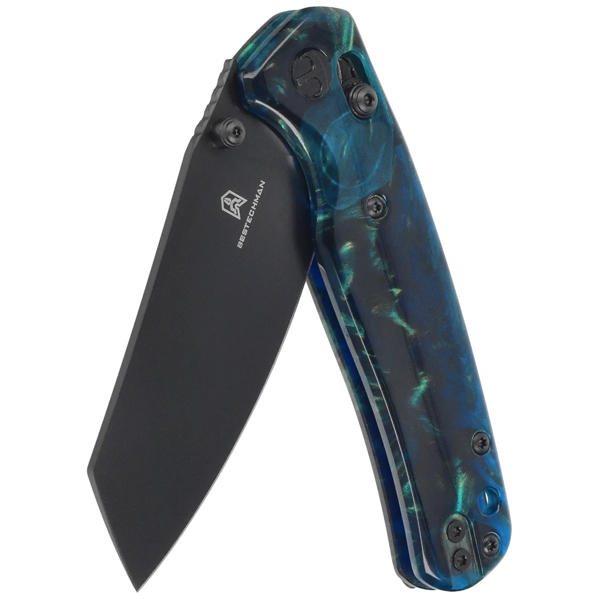 Bestechman Cicada's Wing Knife Clear Blue Resin, Black PVD 10Cr15MoV (BMK06R)