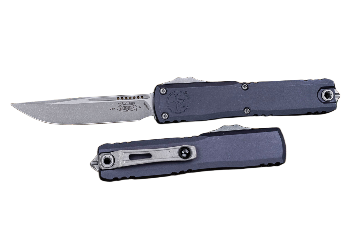 Ultratech OTF Line - Microtech 's flagship OTFLine model , which set the standard for all Out The Front knives. Ultratech 's proprietary trigger spring design, which remains in the “resting” position at all times, except when used. This prevents the spring from fatigue, reducing wear and tear on the internal trigger mechanisms which ensures that the knife will always function effectively. The light weight, the ability to open and close with one hand, the slim shape of the Handle and the sharp blade make it a one-of-a-kind knife, available only from Microtech.