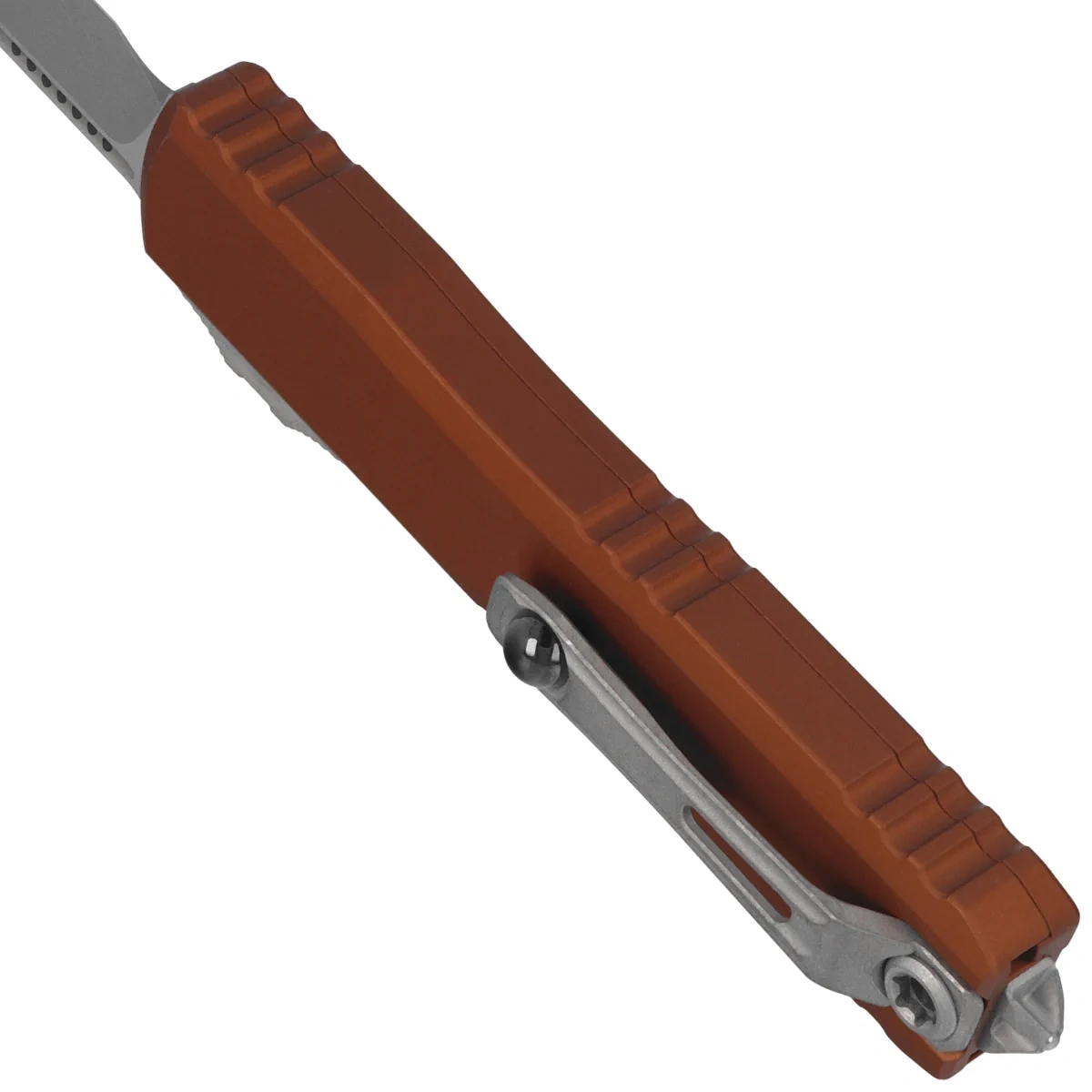 386,94 €Ultratech Gen IV S/E Brown Aluminum, Apocalyptic is a full-size OTF (Out The Front) automatic knife from Ultratech. The fourth generation is distinguished by a number of improvements such as; Crud Kutter™, Dual-Fuel Drive Train™. The Handle was also redesigned, equipping it with solutions known from other models. Working in D/A (Double Action) mode, it allows the blade to be instantly extended and retracted with a single thumb movement. The design by Tony Marfione, owner of Microtech Knives, combines modern design with the highest quality workmanship.