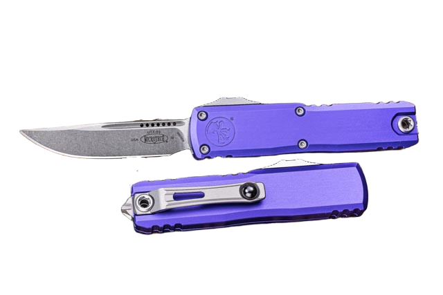 Microtech UTX-85 Gen IV S/E OTF Knife Purple Aluminum, Stonewashed M390MK by Tony Marfione (12314-10PU)
