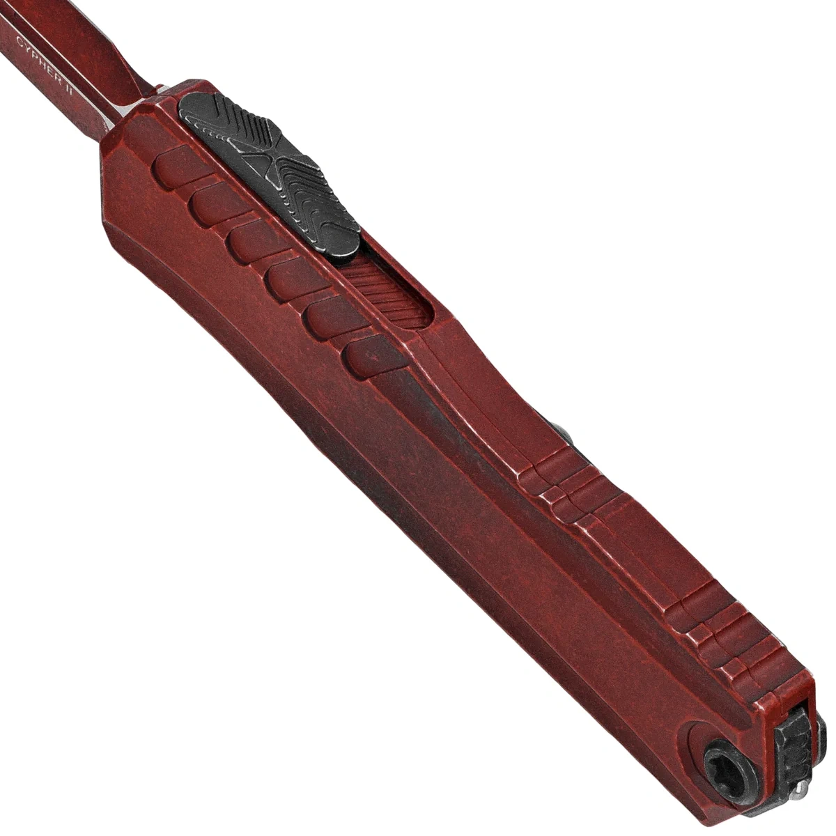 Microtech Cypher II D/E OTF Knife Weathered Crimson Aluminum, Weathered Crimson M390MK by Deryk Munroe i Tony Marfione (1242-1WCM)