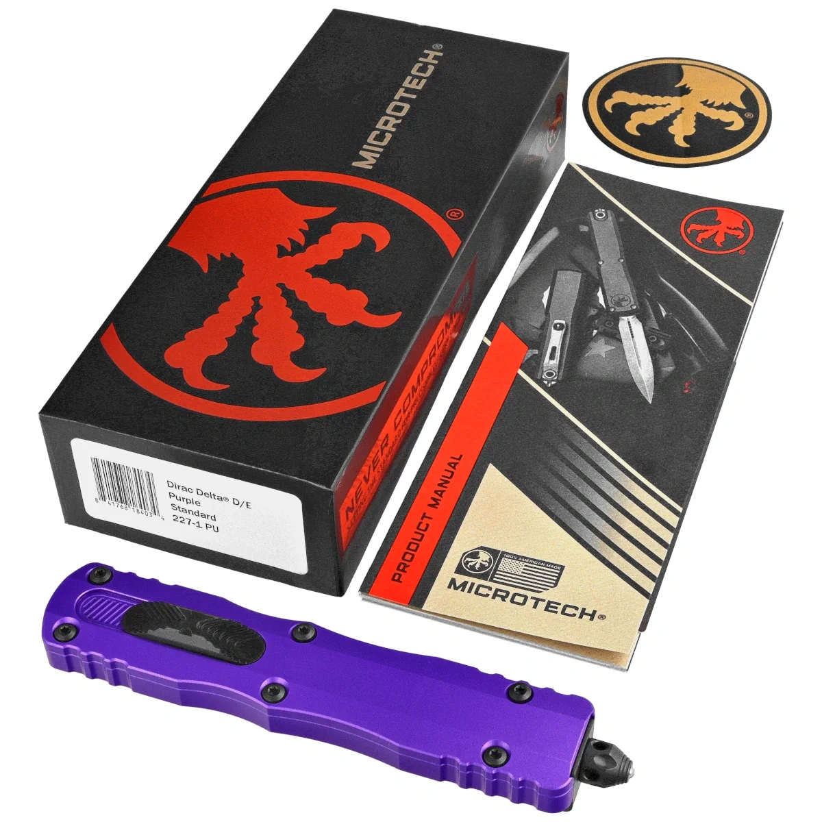 Microtech Dirac Delta D/E OTF Knife Purple Aluminum, Black M390 by Tony Marfione (227-1PU)