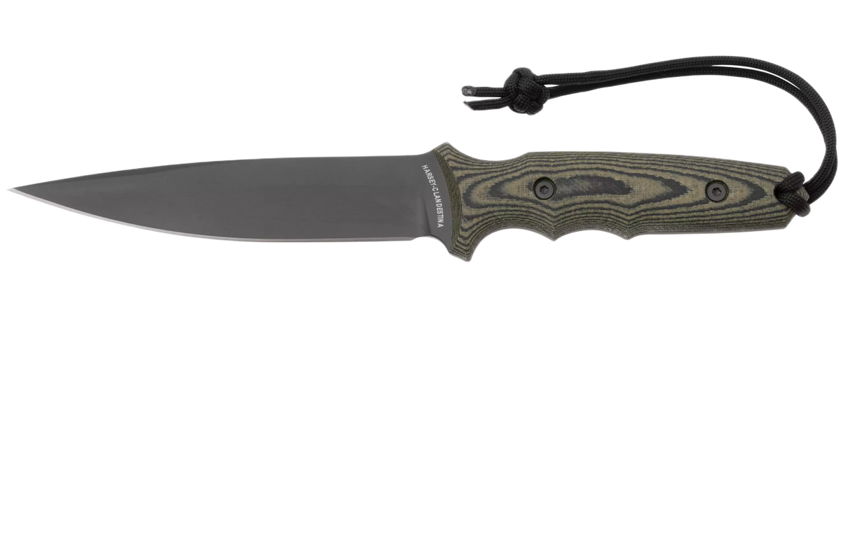 - Spartan Harsey Clandestina Camo Linen Micarta, Black PVD, a large tactical knife designed by renowned knifemaker, Bill Harsey. Strong full tang construction with excellent CPM MagnaCut steel, Micarta composite handle, multi-position kydex sheath.