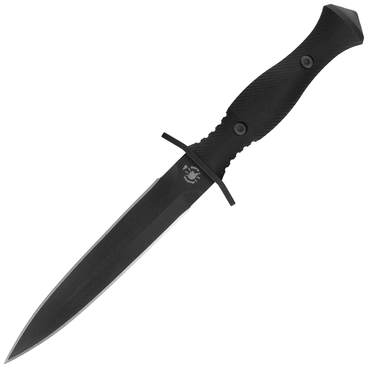 Harsey Dagger Black Canvas Micarta, Black PVD is the result of a close collaboration between the Spartan Blades brand and William W. Harsey - legendary designer of combat tools and former special forces operator. Created with real tactical operations in mind , this model avoids aesthetic exaggeration and superfluous embellishments, focusing solely on what is essential: cutting alignment, balance, penetrating geometry and structural resistance. The symmetrical dagger blade allows identical actions with both edges, and its central balance allows full control under high operational stress. The use of CPM MagnaCut steel guarantees excellent sharpness retention, working edge stability and environmental resistance, which in the field is sometimes crucial. The entire blade is coated with a black PVD coating, which reduces light reflections and increases the blade's resistance to wear. The textured Canvas Micarta composite Handle has been molded for maximum safety and control. A pronounced crossguard protects the hand from slipping on the blade, and non-slip grips provide stability even in wet conditions or when working with gloves. The knife comes with a sheath with a mounting system, allowing safe and quick carrying in an operational environment. This is a tool without compromise, designed for those who know what functionality is in extreme situations.