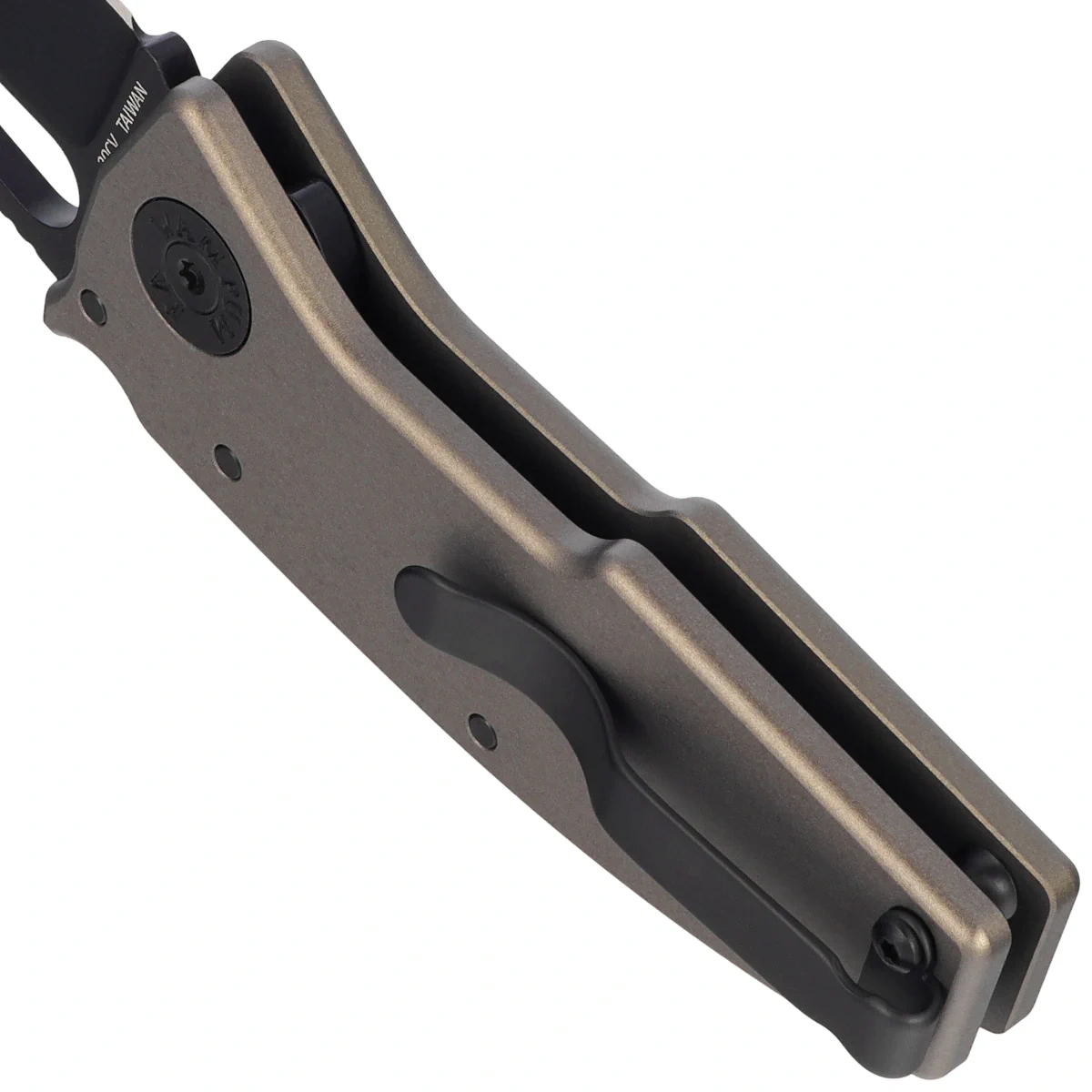 Nano-Shark Stealth Clip Point Artillery Grey Aluminum, Black DLC, the result of years of work and experience of Andrew Demko, long-time designer of Cold Steel. The smallest in the Shark family, designed for the toughest tasks, despite the size a real tool, characterized not only by robustness and power, but also by a unique design. Ergonomic Handle, made of aluminum and Blade made of CPM 20CV steel , one of the best powder steels used in knives today. One of the most important elements of the knife is its lock. Shark-Lock™ is an innovative mechanism that is considered one of the strongest in the world. Thanks to it, the knife is not only safe to use, but also gives you the confidence that it will stand up to even the toughest tasks. This is an exceptional example of a compact EDC (Every Day Carry) knife , an excellent choice for anyone looking for a reliable tool for everyday use.