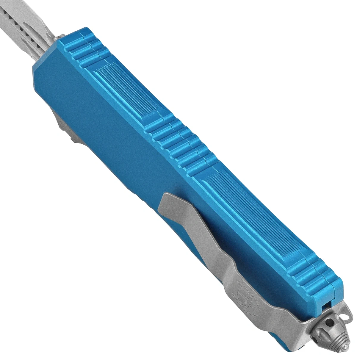 The Scarab II Gen III Executive S/E Blue Aluminum, Stonewashed is the pinnacle of excellence in automatic tactical knives, taking its inspiration from the original Microtech Ultratech design.