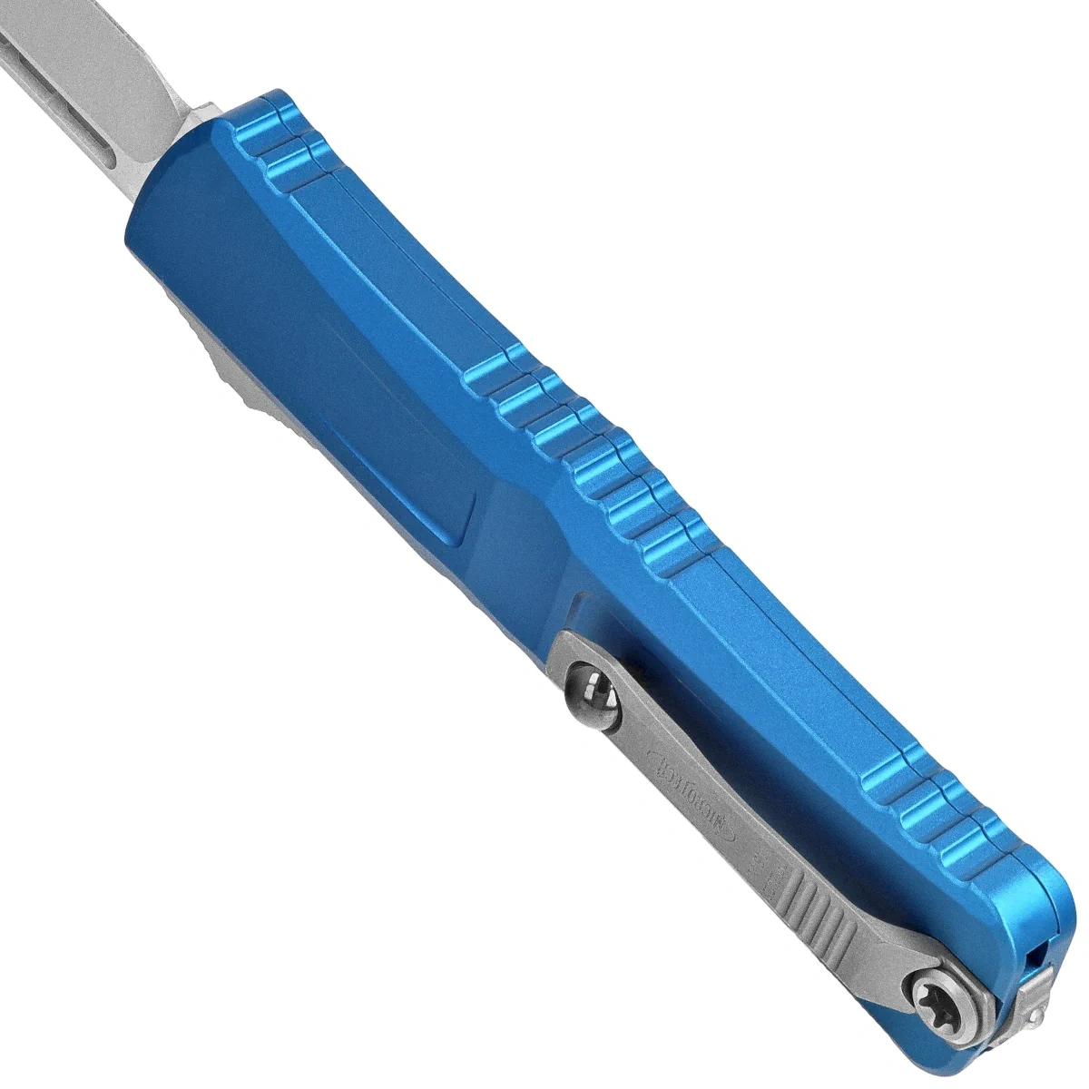 Combat Troodon Gen III S/E Blue Aluminum, Stonewashed this largest of the automatic knives is the pinnacle of precision engineering and tactical prowess in the field of OTF (Out The Front) knives. Built for a wide range of utility applications, it boasts a 25% larger size compared to the flagship Troodon. Precisely crafted, it features a sophisticated and hellishly fast mechanism that extends the razor-sharp blade. 100% made and assembled in the USA. Designed by Anthony Marfione, knifemaker and owner of Microtech Knives.
