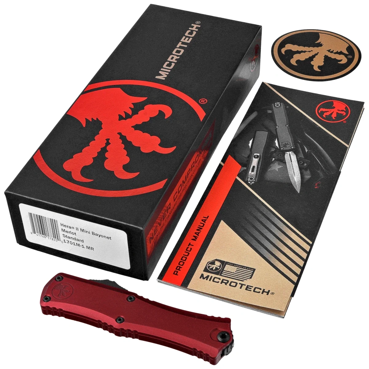 - Hera II Mini Bayonet Merlot Aluminum, Black compact version of one of the best OTF knives, inspired by Troodon. Lightweight and easy to carry, while retaining the power and performance of larger designs. Project by Anthony Marfione.