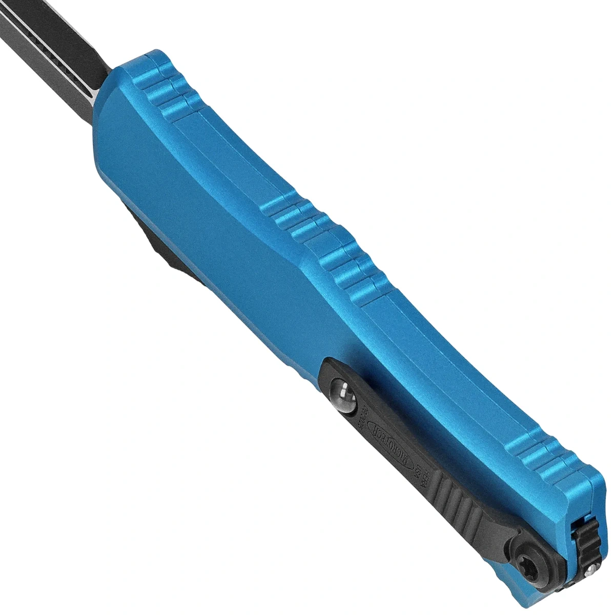 Hera II Mini D/E Blue Aluminum, Black one of the most versatile OTF (Out The Front) automatic knives. Modeled on the iconic Troodon model , it is a link between EDC models and strictly tactical designs . An automatic of above-average strength with a mechanism operating in D/A (Double Action) mode, ensuring fast, strong and secure blade ejection and retraction. The model is distinguished by the excellent fit of the parts and the highest quality finish. The design is by Anthony Marfione, renowned knifemaker and owner of Microtech Knives.