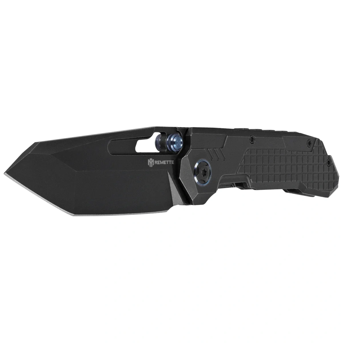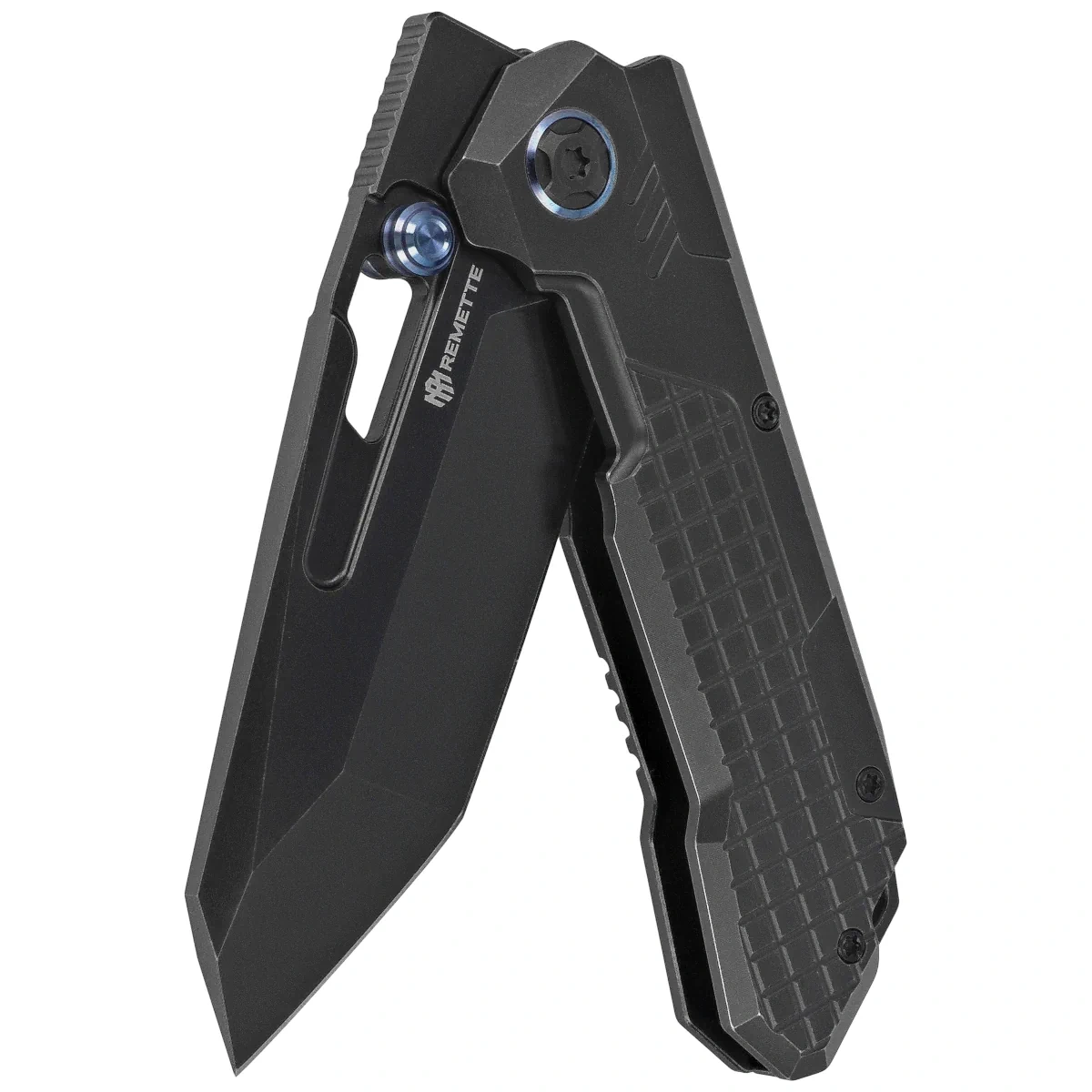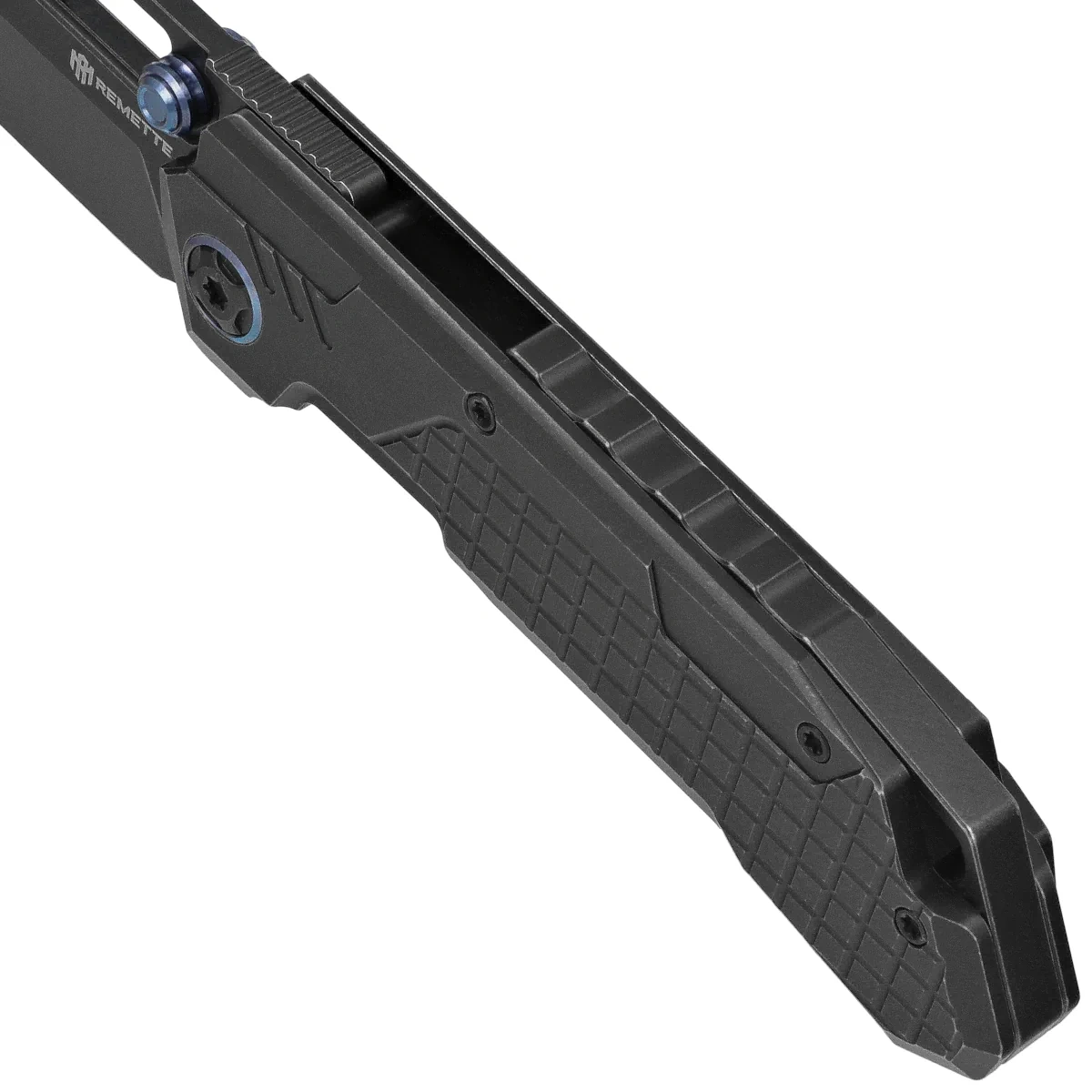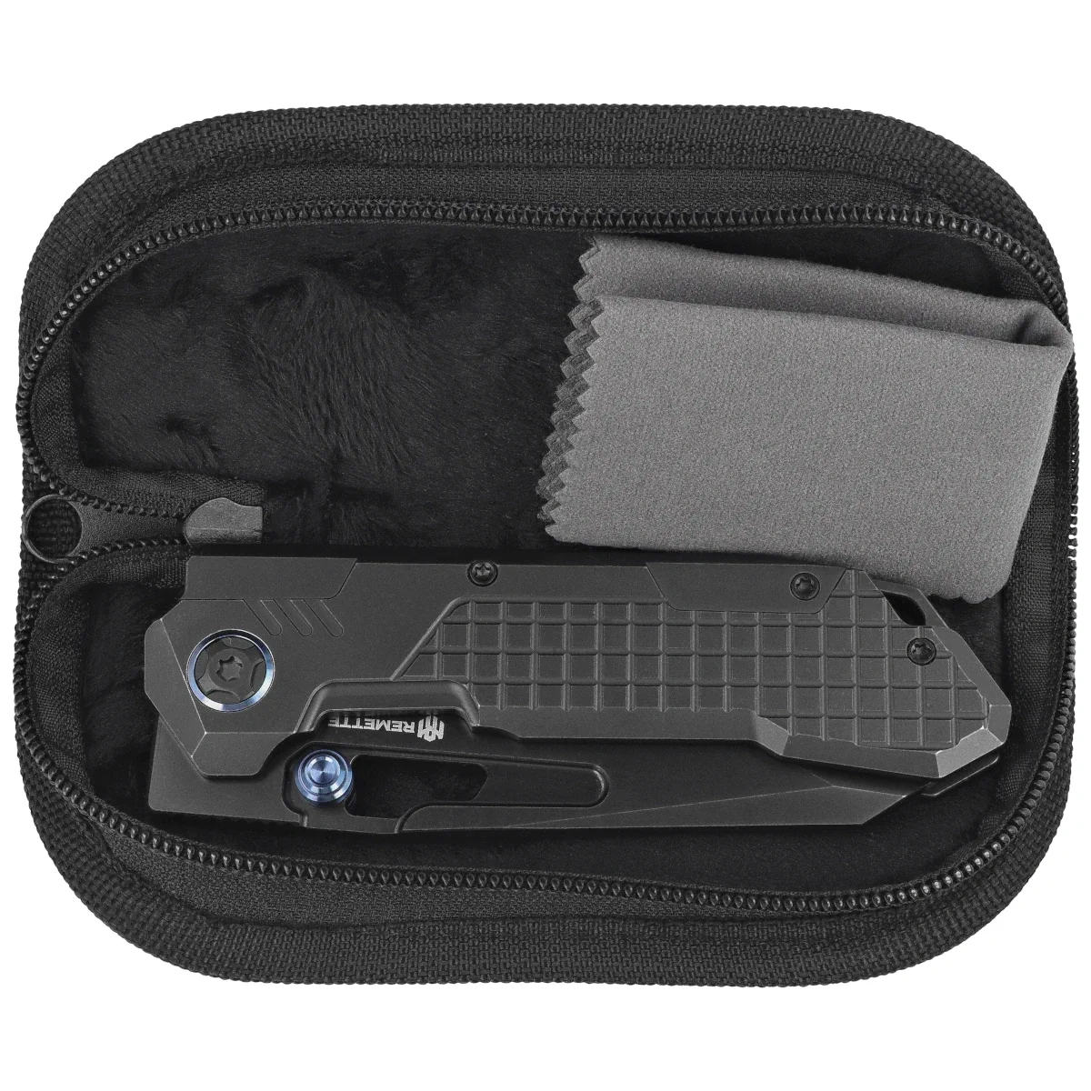 RT-Cool Leopard Black Titanium, Plating Black takes its place in the Remette range as a tool designed for intensive daily use, where structural rigidity, predictable operation and a high safety margin are crucial. It's a folder with a definite industrial aesthetic, stripped of decorative elements in favor of clear geometry and functional details. The entire design is subordinated to control and stability - both in the grip and during blade operation. The design unambiguously communicates the utilitarian nature of the knife, targeting the audience expecting a tool with a technical, uncompromising DNA. Blade is made of Böhler M390 steel, with a reverse tanto profile that provides a reinforced tip and high resistance to point loads. This geometry is conducive to tasks requiring precise pressure and work at the tip of the blade, while maintaining stability for more demanding applications. The flat grind used promotes smooth guidance of the blade in the material, provides good cutting control and predictable blade behavior under varying resistance. The Manual Fine Grinding Pearlescent Surface Effect finish gives the surface a subtly varied texture, reducing reflections and enhancing the technical nature of the blade. The titanium Handle is shaped for a stable, secure grip and high structural resistance. Clear planes, precision milling and textured surfaces improve control and prevent hand rotation, even when working with gloves or in less favorable conditions. The overall design maintains a balanced balance between weight and stiffness, which translates into predictable knife handling in every phase of use. As a result, the RT-Cool Leopard is a proposition for users looking for a solid premium EDC knife with increased structural strength, modern mechanics and an unambiguously tool-like character, without compromising on safety and control.