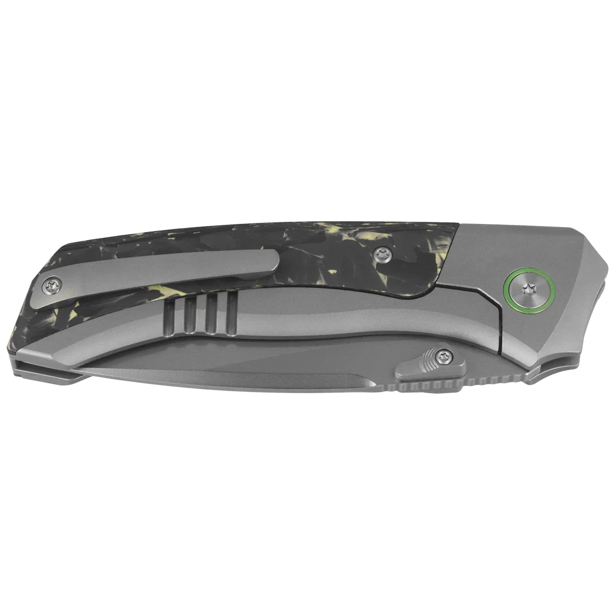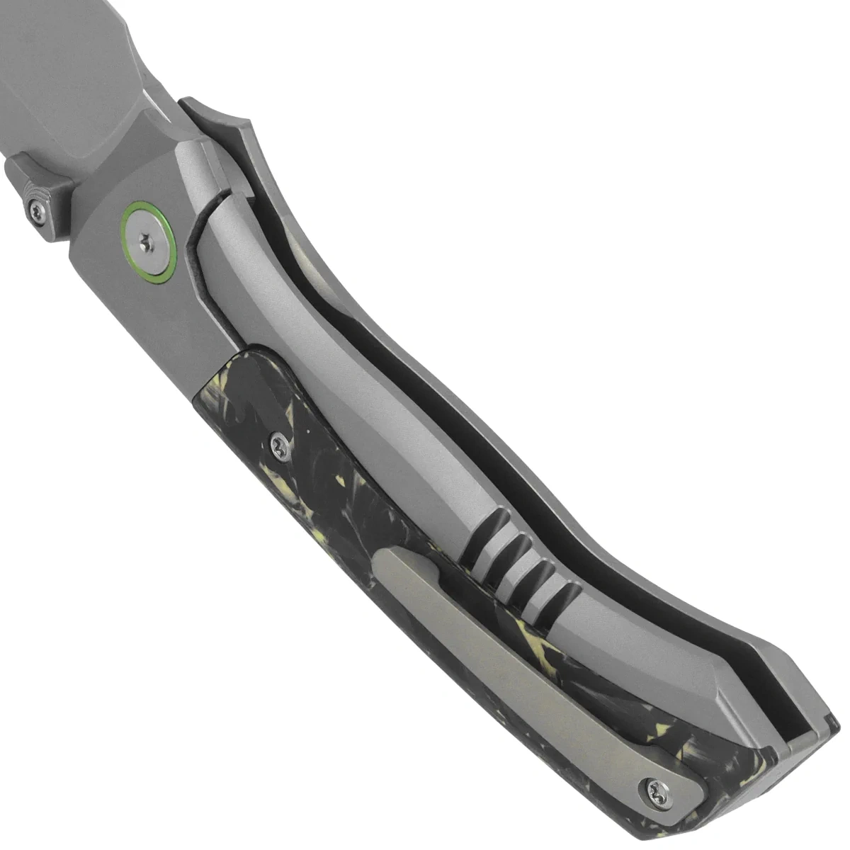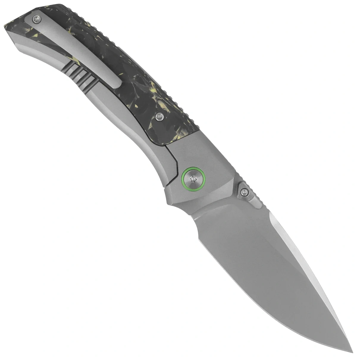 Remette RT-Steed Knife Gray Titanium/Black-Green Carbon Fiber, Pearlescent M390 (RTWS-TY)