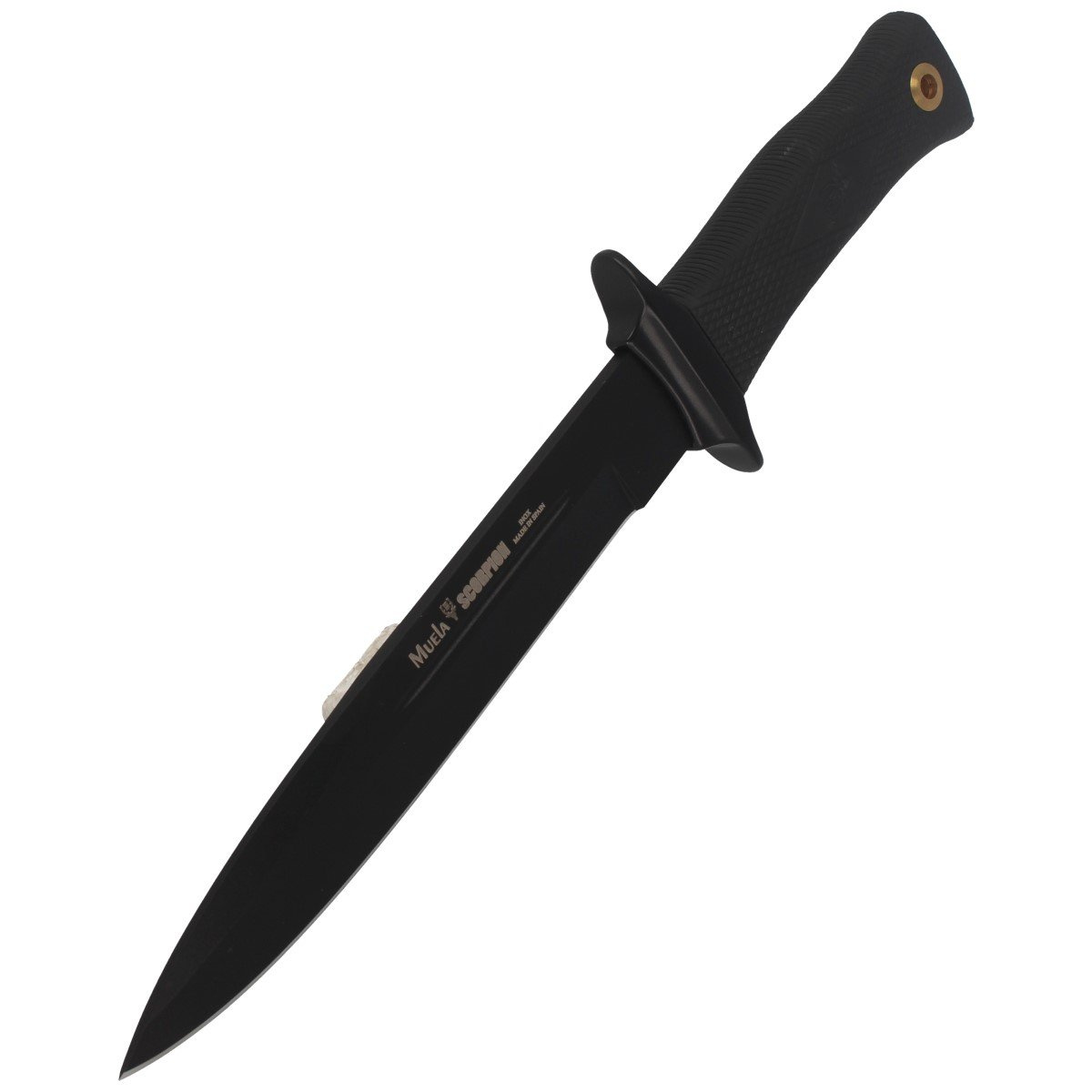 - Muela SCORPION-19N solidny uniwersalny nóż bojowy ze stali 420H zniesie pracę w każdych warunkach. Klinga ze zbroczem, fałszywym ostrzem o profilu Spear Point pokryta odporną na zarysowania matową nierefleksyjna powłoką PTFE. Rękojeść elastomer etui skóra