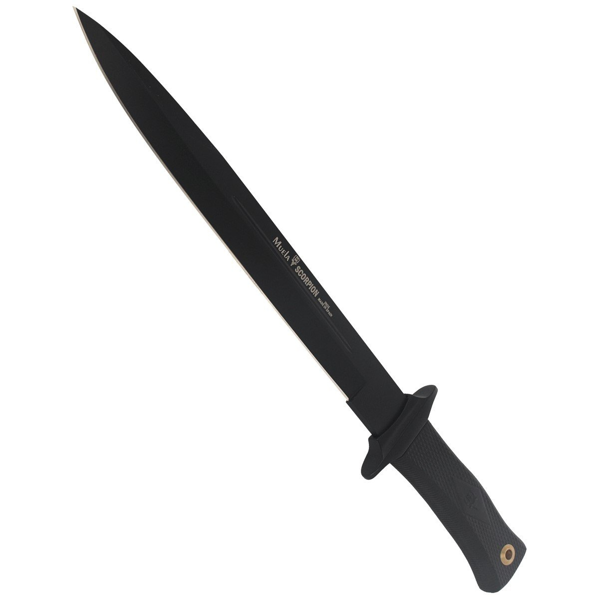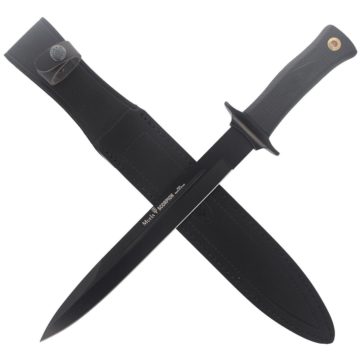 - SCORPION-26N solidny uniwersalny nóż bojowy Muela ze stali 420H zniesie pracę w każdych warunkach. Klinga ze zbroczem, fałszywym ostrzem o profilu Spear Point pokryta odporną na zarysowania matową nierefleksyjna powłoką PTFE. Rękojeść elastomer etui skóra