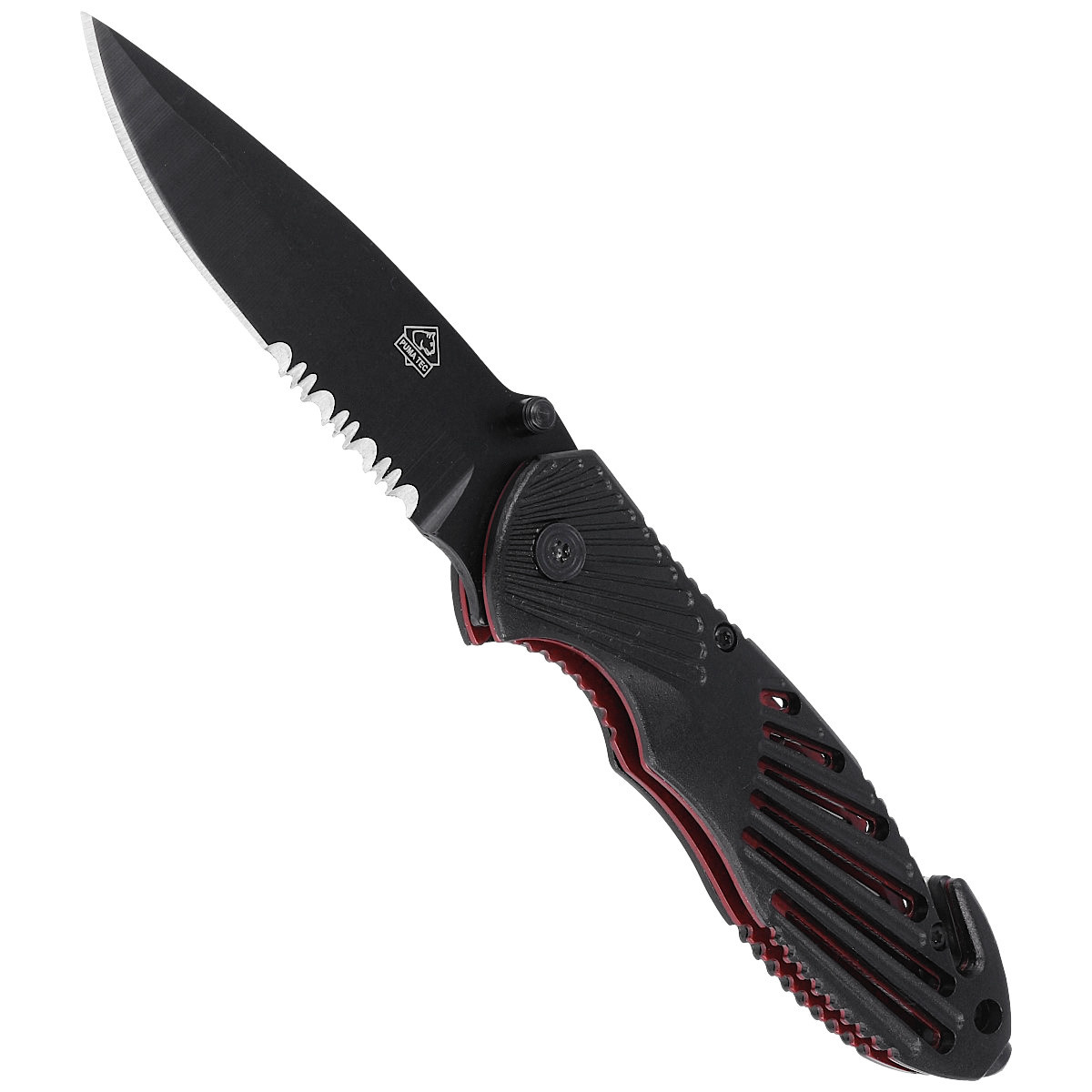 - Drop Point Rescue Folder otwierany jedną ręką, nóż ratowniczy niemieckiej firmy Puma Solingen. Głownia o profilu Drop Point, pokryte czarną matową powłoką, ostrze ze stali nierdzewnej