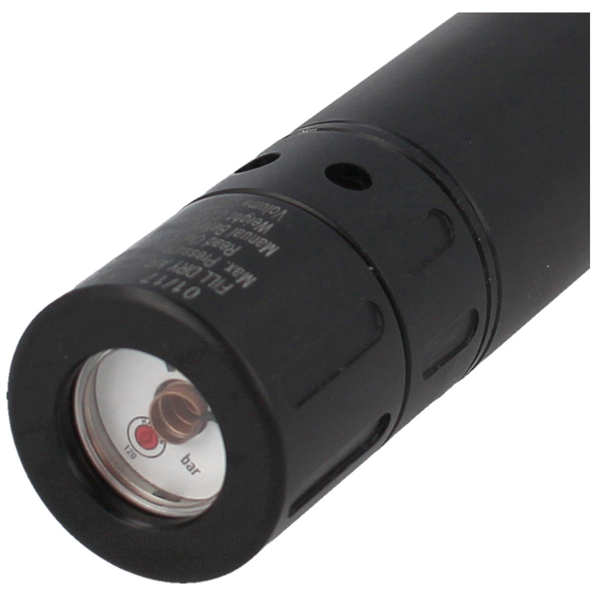 - Zasobnik o pojemności 50cc do wiatrówek PCP firmy Hatsan: AT-P1, AT-P2. Manometr pozwala kontrolować ciśnienie w zbiorniku a tym samym stopnień jego naładowania. Obrotowa osłona chroni wlot do kartusza przed uszkodzeniem. Waga napełnionego kartusza 490 g.