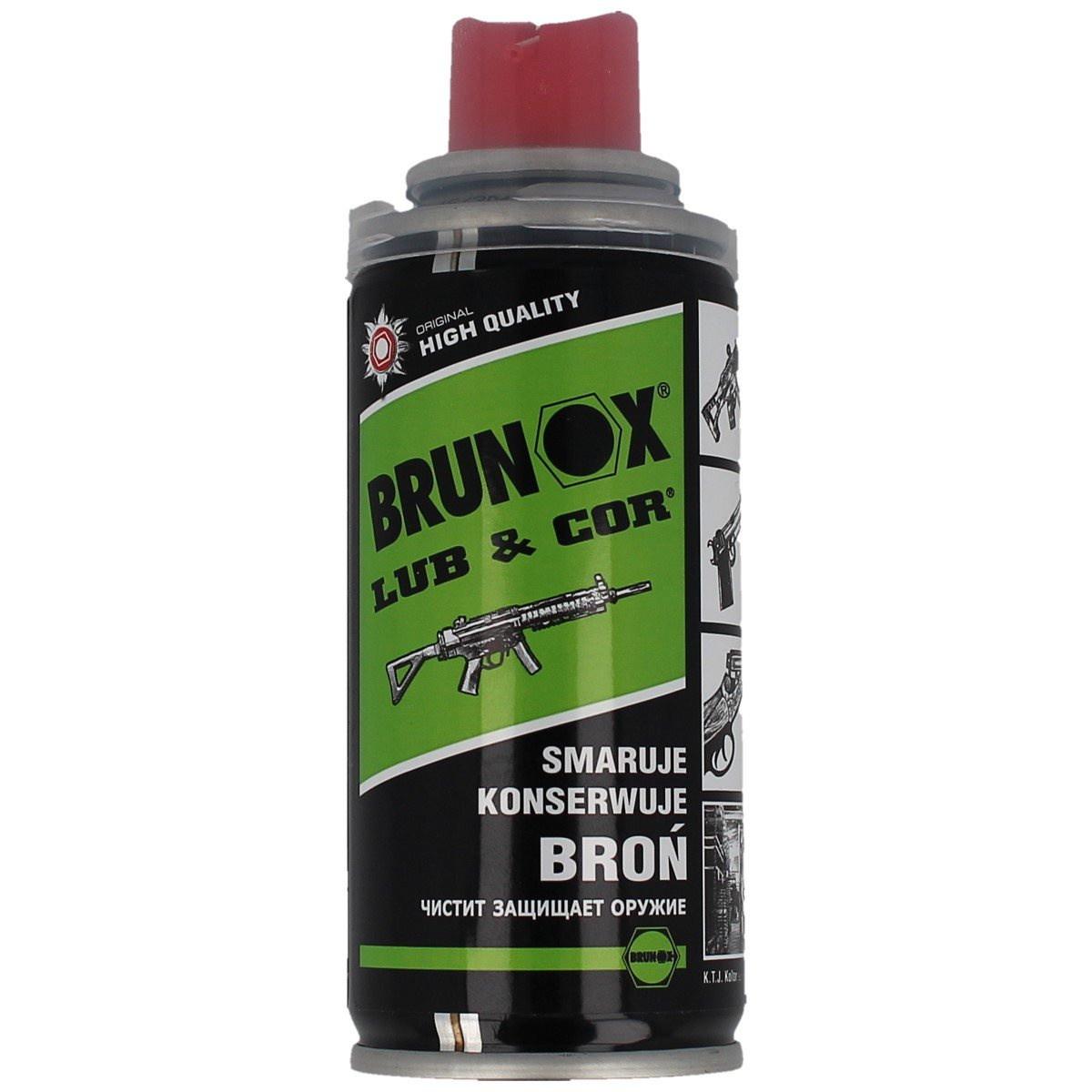 Pamiętaj! Przed użyciem Lub & Cor wszystkie mechanizmy broni należy pokryć Brunox® Gun Care Spray. Penetrator ten wnika i rozpuszcza wszelkie zabrudzenia organiczne oraz mineralne, usuwa pozostałości prochu, nagaru, ołowiu, tombaku, niklu i miedzi. Po kilku minutach wyczyścić broń do sucha, a następnie należy użyć preparatu Lub&Cor.