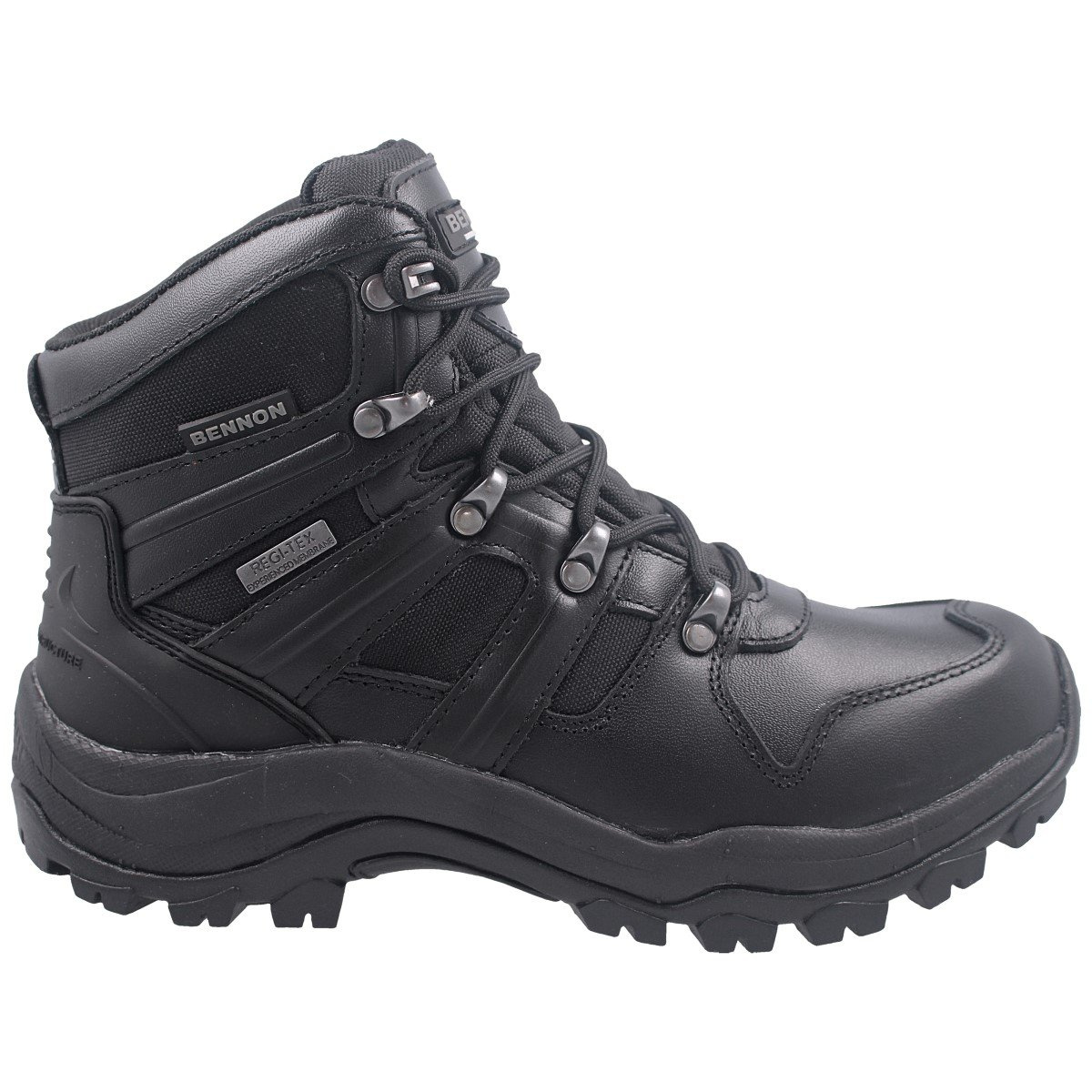 - Bennon Panther High, skórzane trzewiki taktyczno-trekkingowe z membraną REGI-TEX w kolorze black. Lekkie, wygodne trwałe obuwie o wszechstronnym zastosowaniu do pracy i aktywnego wypoczynku. Przeznaczone do długotrwałego chodzenia. Stabilizator pięty TPU.