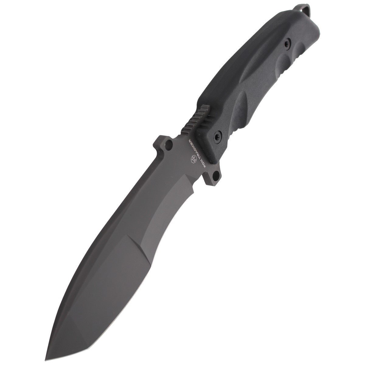 Tracker Utility Camp and Sniper Knife, legendarny Tracker marki FKMD (Fox Knives Military Division) nóż o konstrukcji full tang. Niezwykle wszechstronne narzędzie z masywną głownią do agresywnego użycia w ekstremalnych sytuacjach. Niezastąpiony podczas wypraw survivalowych, doskonale sprawdza się również jako nóż snajperski. Ostrze służące do wbijania i grzebania, szeroki brzuch do siekania, rąbania oraz wąski obszar do strugania.