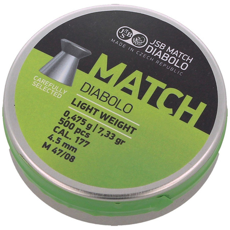 - Match Light Weight 0.475 g lekki, pistoletowy śrut tarczowy z płaskim czołem w kal. 4.51 mm. Najlepsza amunicja wyczynowa do zawodów ISSF. Idealnie płaska głowica umożliwia uzyskanie doskonale widocznych, gładkich, nieposzarpanych przestrzelin. Op 500 szt