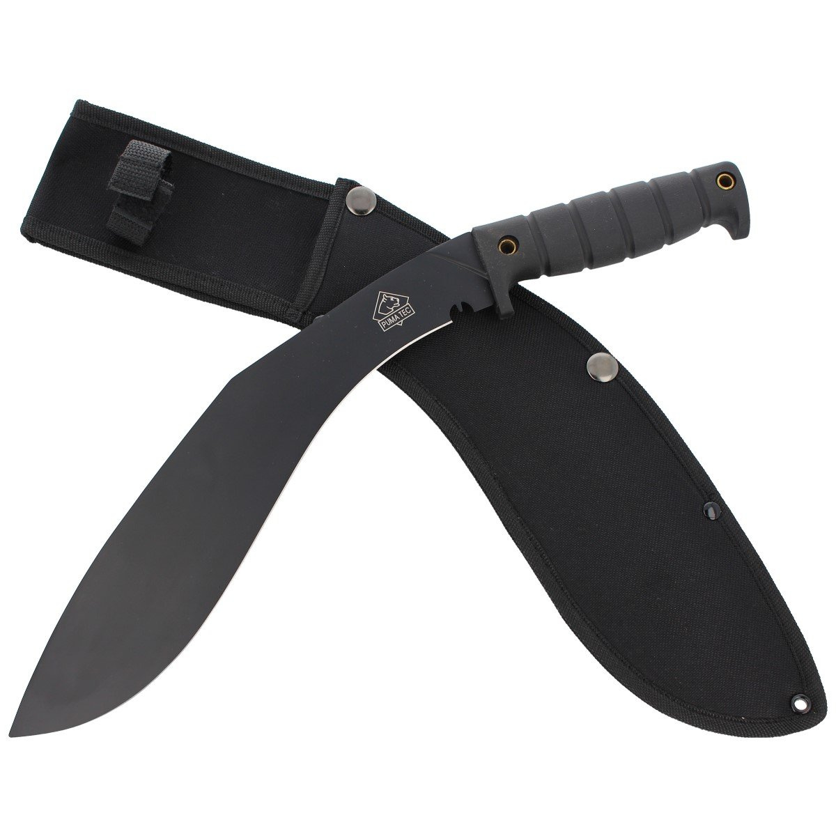 Kukri Black Rubber, Black - profesjonalna maczeta o konstrukcji full tang niemieckiej firmy Puma - w doskonałej cenie! Kukri jest połączeniem narzędzia użytkowego i narzędzia do obrony. Ostrze służące do wbijania i grzebania, szeroki brzuch do siekania oraz wąski obszar do strugania.