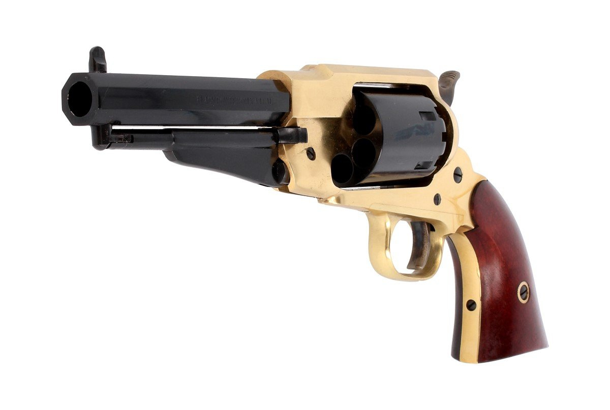 - Remington 1858 Texas Sheriff .44 6-ciostrzałowy ładowany odprzodowo kapiszonowy rewolwer czarnoprochowy w kal .44 z ramą mosiężną. Rewolwer z zamkniętym szkieletem (o większej sztywności) umożliwiającym wyjęcie bębna i założenia nowego, już załadowanego..