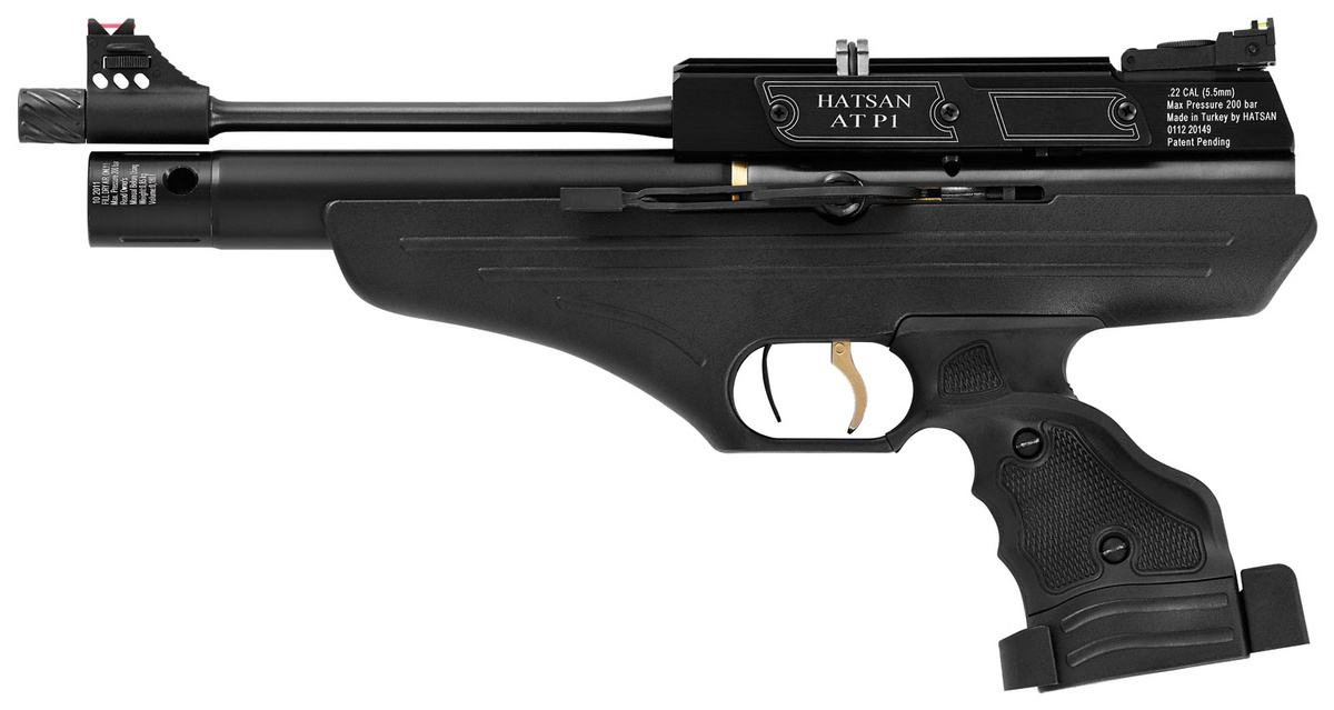AT-P1, wielostrzałowy pistolet wiatrówka PCP firmy Hatsan Arms wyposażony w światłowodowe przyrządy celownicze TruGlo. Dostępny w kalibrach .177 (4.5 mm), .22 (5.5 mm), .25 (6.35 mm). Jeden z najmocniejszych pistoletów pneumatycznych na rynku!
