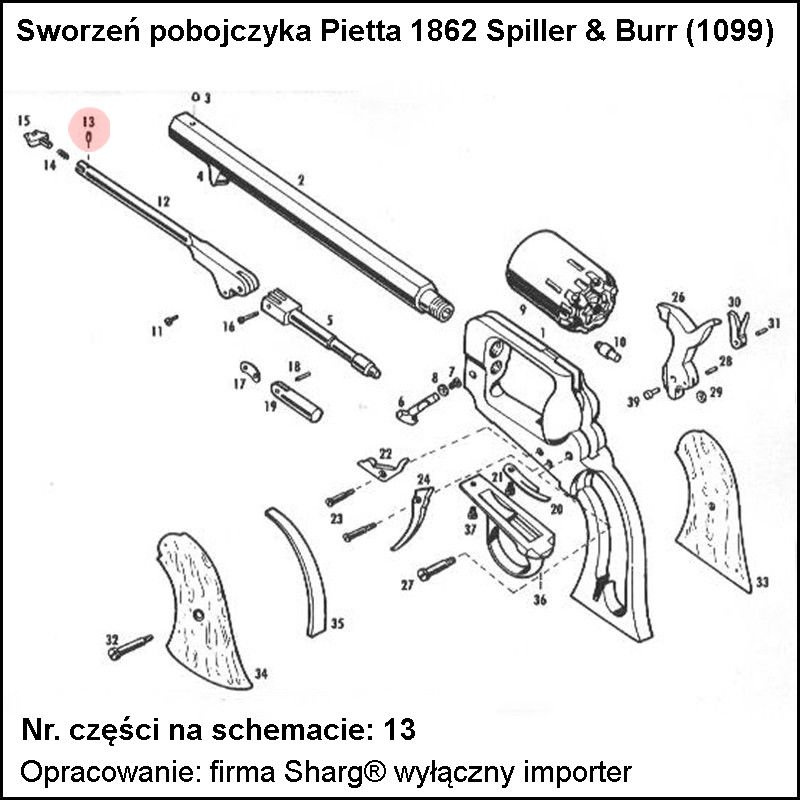 - 1099 (serwis) sworzeń pobojczyka do rewolwerów 1858 Remington New Model Army (.44 cal) / Navy (.36 cal) firmy Pietta. Pasuje do modelu 1862 Spiller & Burr.