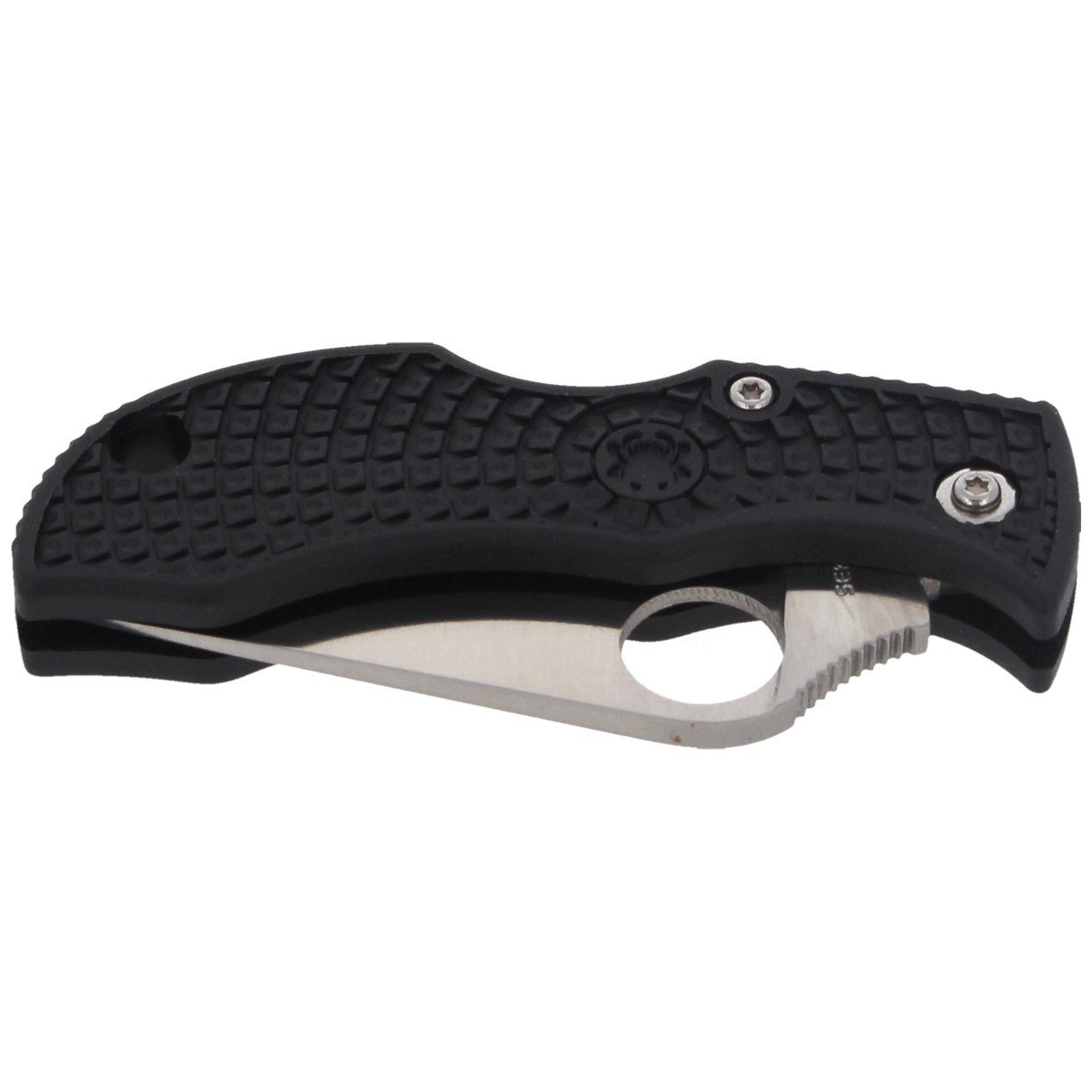Głownia - o zmodyfikowanym profilu Clip Point, grubości 2.5 mm. Wykonana z japońskiej nierdzewnej stali VG-10 (łatwej do naostrzenia, dobrze trzymającej ostrość). Klinga hartowana w przedziale 59-61 HRC. Ostrze gładkie Plain wyprowadzono szlifem płaskim pełnym (Full Flat Grind). Szlif ten zredukował masę noża oraz poprawił właściwości tnące. Powłoka Satin Finish (pół-mat) eliminuje odblaski. Okrągłe wycięcie SpyderHole (patent Spyderco) umożliwia otwarcie noża kciukiem. Solidny Back-Lock z dodatkowym wycięciem Boye Detent, zapobiegającym przed przypadkowym zwolnieniem blokady przy mocnym uchwyceniu noża. Karbowana rampa pod kciuk.